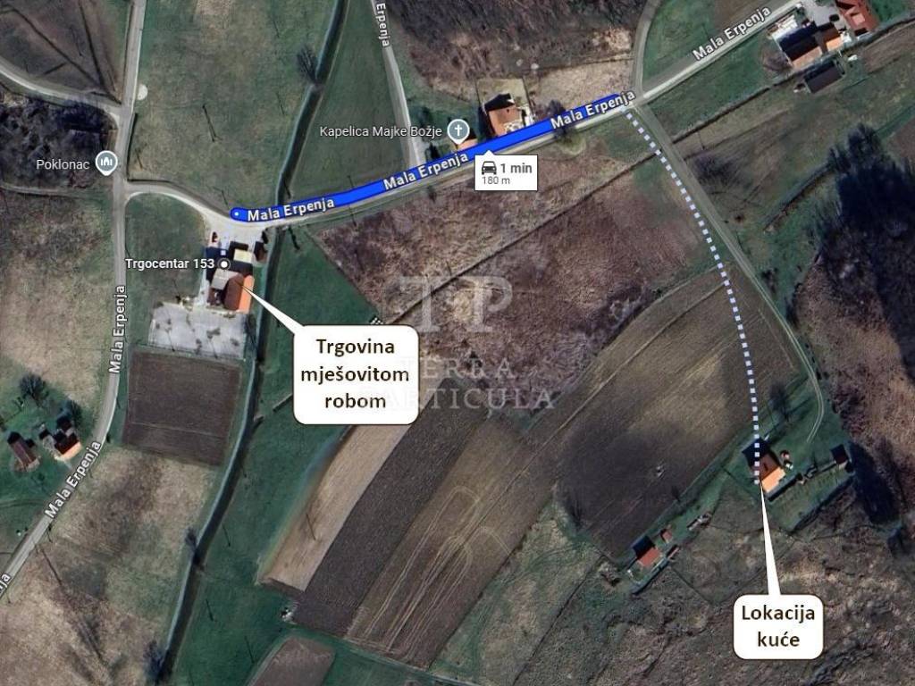 Na prodaju nudimo imanje s kućom od cca 180 m² (2003.), štalom i kleti, sve na površini od 41.063 m². U zoni gradnje nalazi se 5.074 m². Vlasništvo je čisto, 1/1 bez tereta, struja, voda je iz bunara (hidrofor), dok je pln u glavnoj ulici kao i moguće priključenje vode. Ponuđeno se nalazi na adresi Mala Erpenja 39B, Krapinske Toplice. U blizini se nalazi trgovina mješovitom robom, a udaljenost do Tuheljskih i Krapinskih Toplica nekoliko je kilometara. Većina imanja je ograđena.