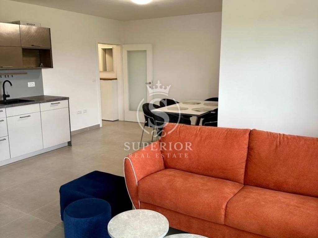 U mirnom naselju Rovinja, daleko od gradske vreve, smješten je ovaj funkcionalan i potpuno namješten stan u visokom prizemlju novogradnje.