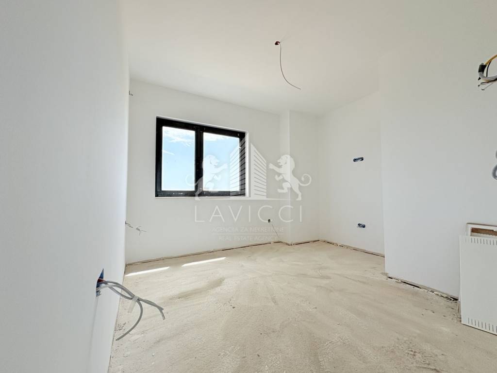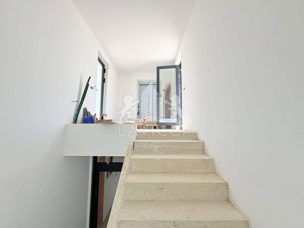 Zgrada moderne novogradnje s ukupno tri stambene jedinice sastoji se od tri etaže, odnosno prizemlja i dva kata.