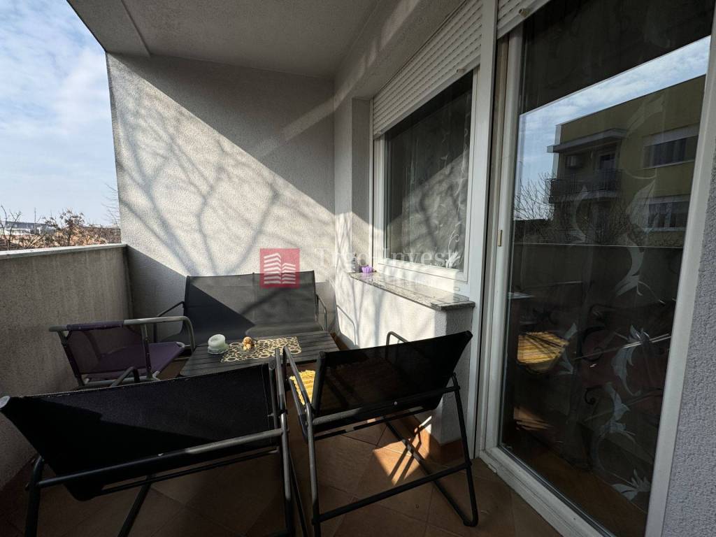 Stan se sastoji od ulaznog hodnika, dnevnog boravka/blagovaone sa izlazom na zatvorenu lođu, kuhinje sa ostavom, gostinjskog WC-a, tri spavaće sobe, zatvorene lođe i kupaonice. Stanu pripada parkirno mjesto u dvorištu zgrade i podrumska prostorija (spremište).