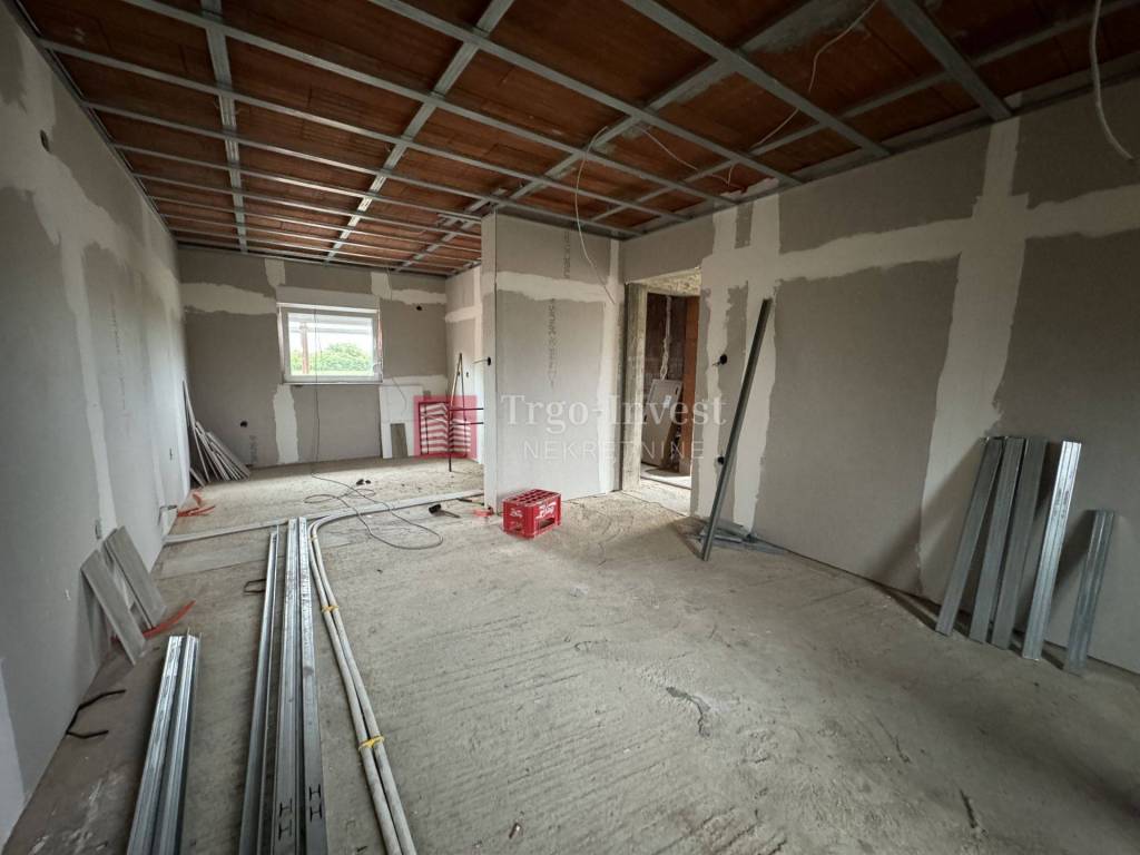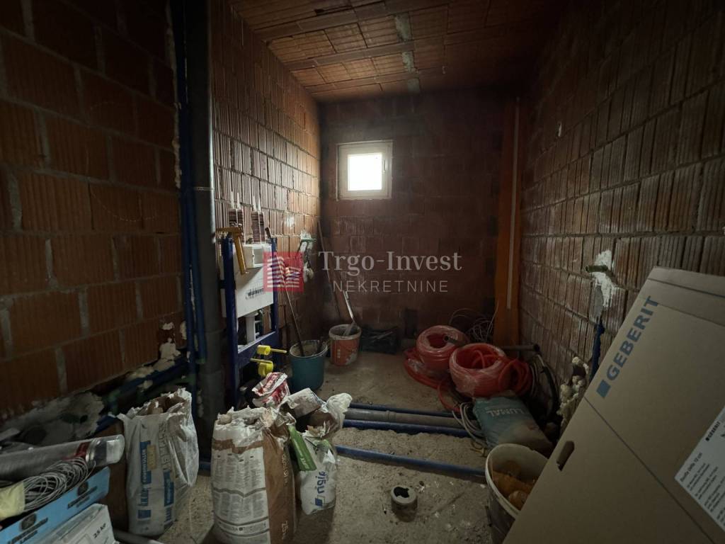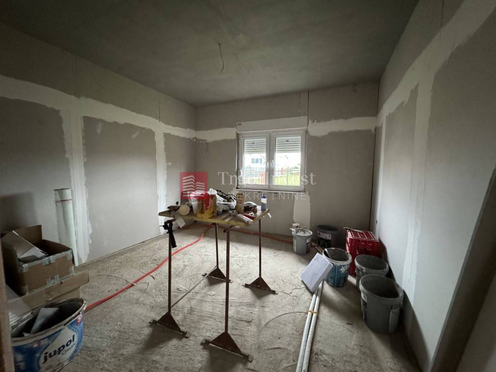 Kuća je u roh-bau fazi, s već provedenom instalacijom struje i vode, ali još bez priključaka. PVC stolarija je ugrađena, spušteni stropovi su izrađeni, a uskoro se planira postavljanje glazura.