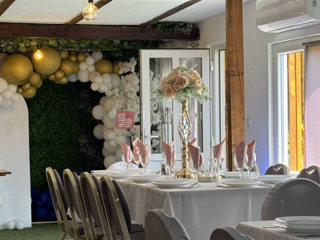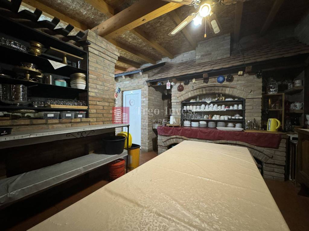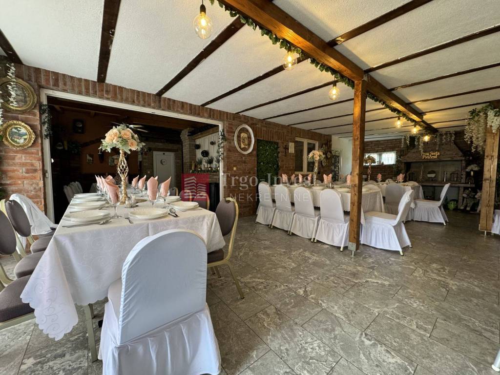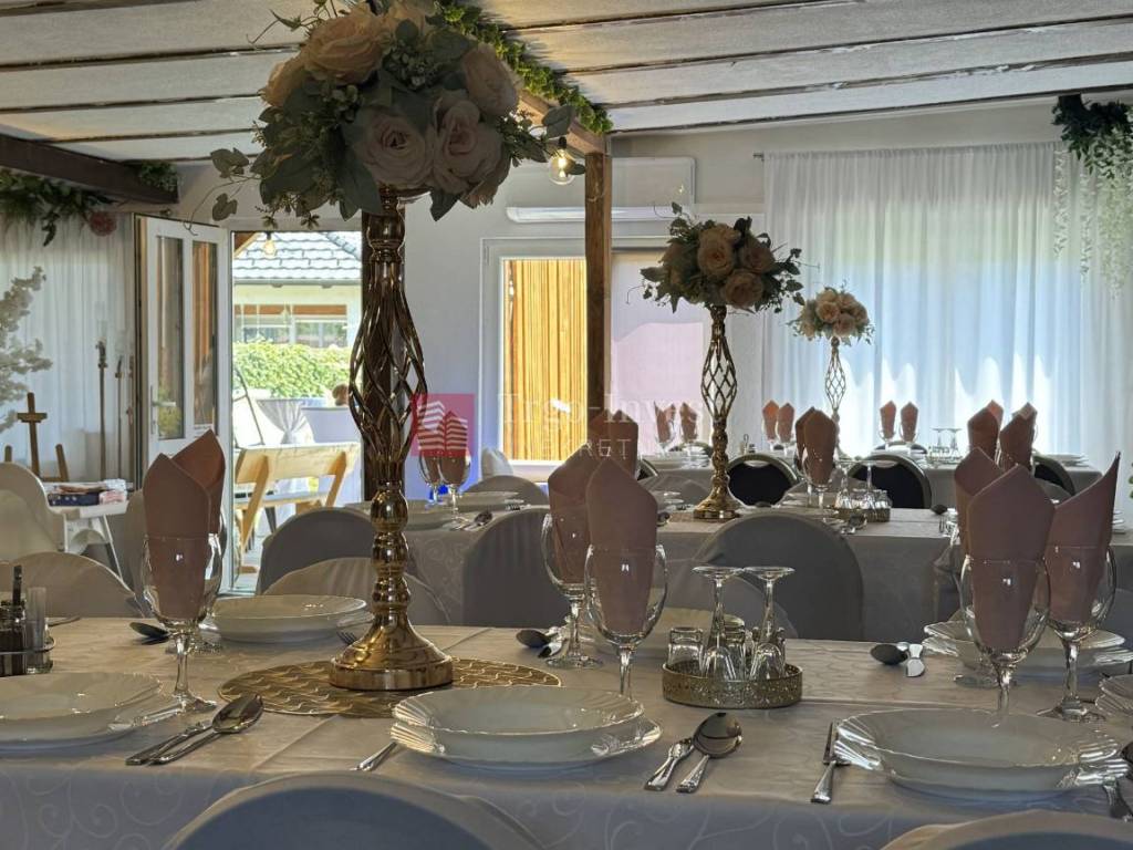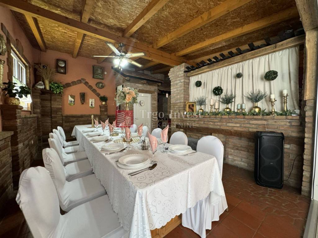 DVORIŠNA ZGRADA sastoji se od velikog otvorenog prostora trenutno uređenog kao prostor za proslave, prostorije s pecarom, dva spremišta, sanitarnog čvora (dvije odvojene WC jedinice m/ž) te natkrivene terase. Objekt je klimatiziran s tri klima uređaja.