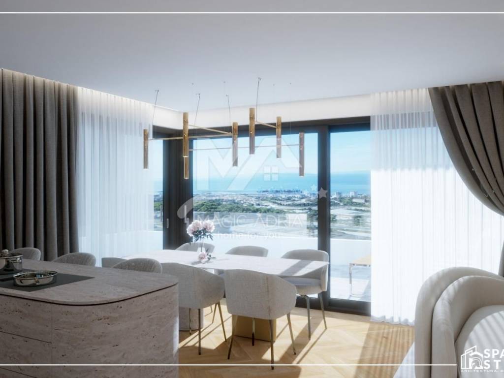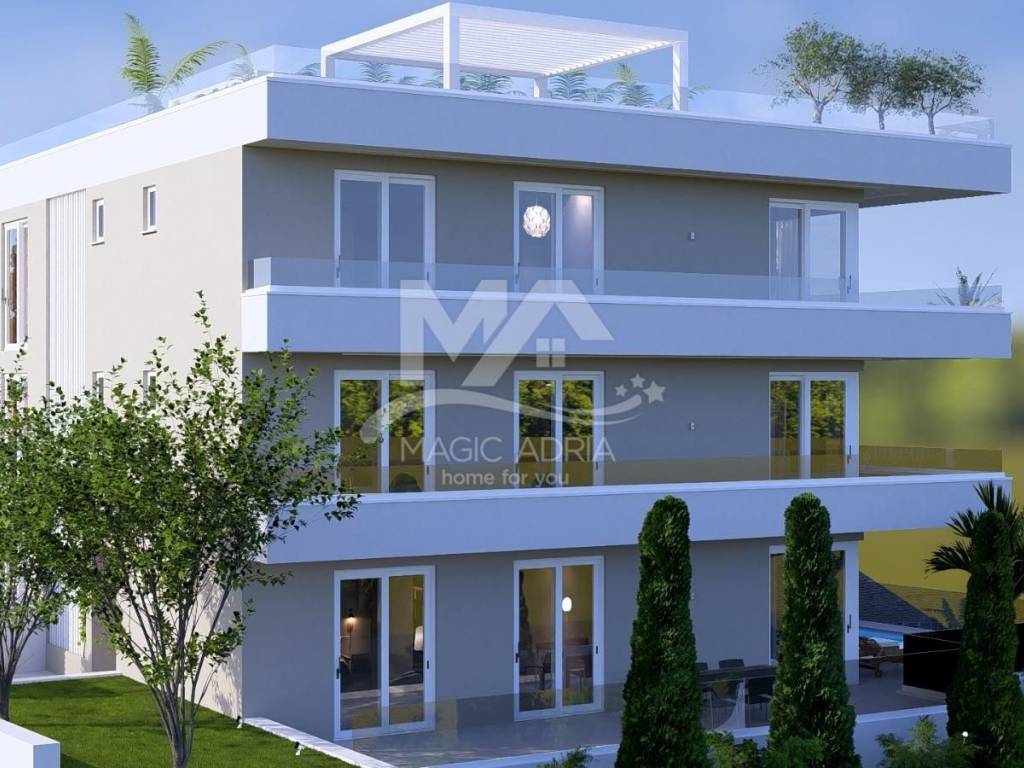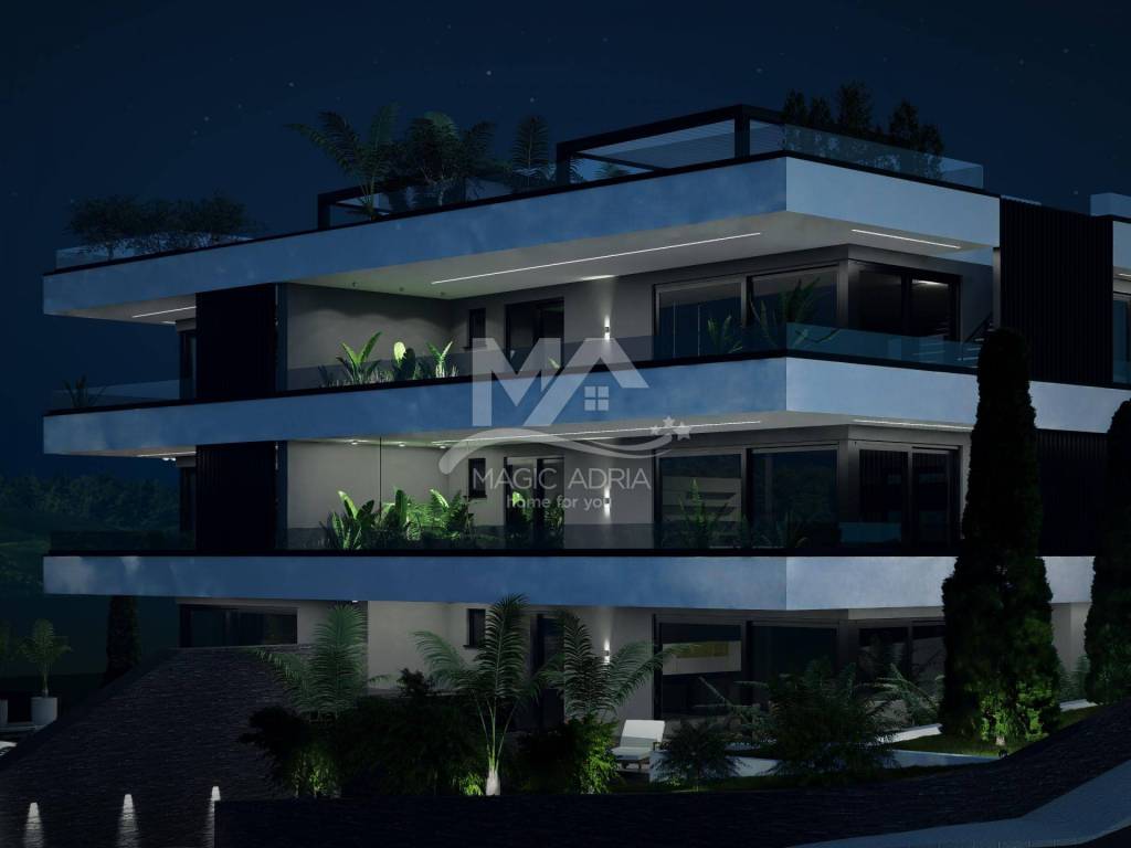 Prodajemo sjajan stan u novogradnji na iznimnoj lokaciji. Otvoren pogled na more, blizina sadržaja potrebnih za ugodan život su prednosti ove nekretnine. Kupac ima mogućnost nekih izmjena po vlastitim željama u ranijoj fazi gradnje. Stan ima garažna parkirna mjesta i spremište u podrumu. Kvalitetna vanjska stolarija, sustav podnog grijanja i klimatizacije sa opcijom dizalice topline je dio standardne opreme dok je ostale stavke uređenja moguće prilagoditi potrebama kupca. Cijena nekretnine je također definirana fazom gradnje i stupnjem uređenja.