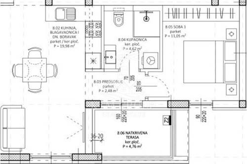 - kuhinje s blagovaonicom i dnevnim boravkom - 19,98m2