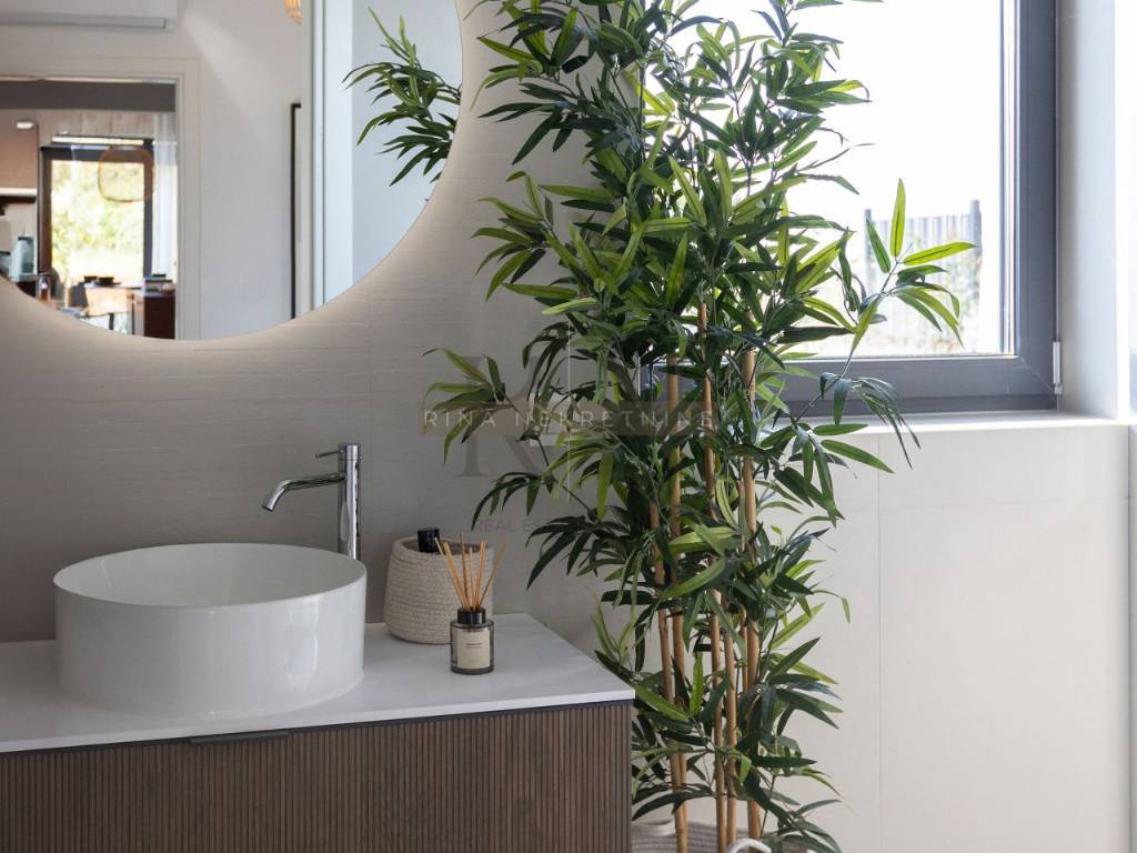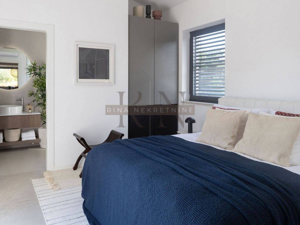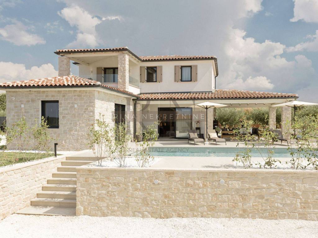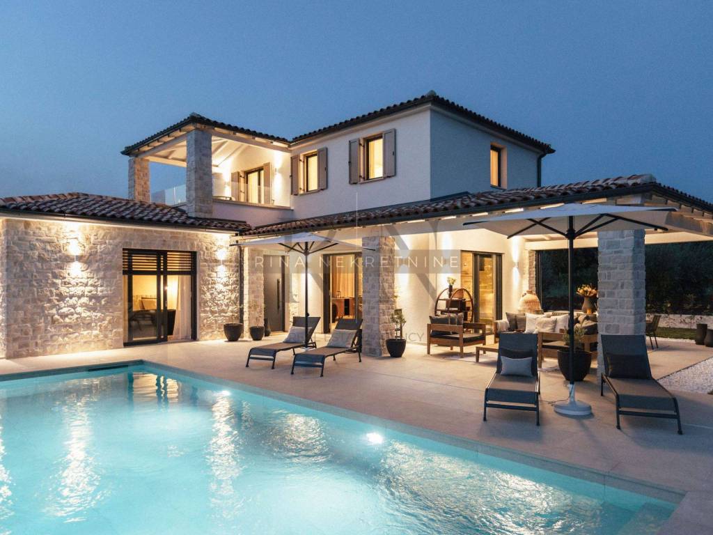 DODATNE KARAKTERISTIKE: - Villa je dizajnirana u modernom istarskom stilu, obložena istarskim kamenom. - Istarski dizajn krovišta sa kosim krovovima i pečenim crijepovima. - Podno grijanje kroz cijelu kuću i bazen putem dizalica topline. - Klimatizacija u svim prostorijama. - Velika aluminijska vanjska stolarija i termo fasada za optimalnu energetsku efikasnost. - ALU beige škure i posebna ograda u istom tonu, uz bogato zasađeno bilje za potpunu privatnost, uključujući tri masline.