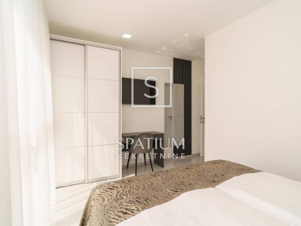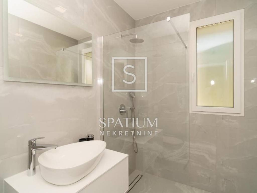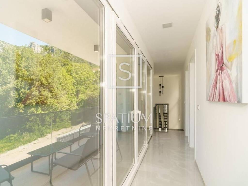 Klima uređaj za grijanje/hlađenje u svakoj sobi. Protuprovalna ulazna vrata, PVC stolarija s elektro pokretnim roletama i komarnicima, prvoklasna keramika i sanitarije, podno grijanje, solarni paneli samo su dio bogate opreme. Potpuno namještena.