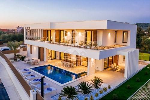 Otkrijte savršen spoj luksuza i udobnosti u ovoj prekrasnoj novoj vili, smještenoj samo nekoliko minuta od mora. Ova moderna vila, koja se prostire na 346 m² bruto stambene površine, smještena je na prostranom terenu od 1180 m² i savršena je za obitelj ili kao investicija za turizam.