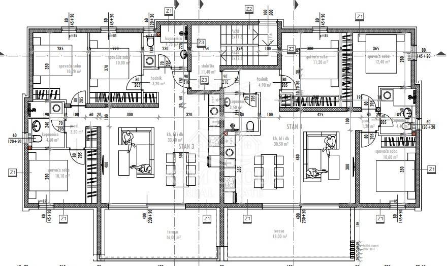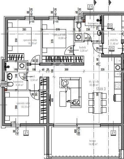 -kuhinja s blagovaonicom i dnevnim boravkom - površine 33,40 m2,