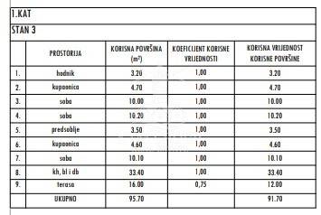 Ovaj stan se nalazi na 1. katu zgrade (S3) i sastoji se od slijedećih prostorija: