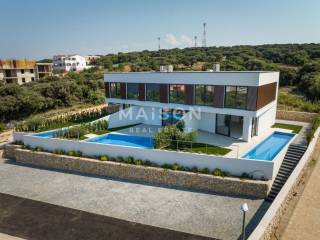 Kuća je opremljene vrhunskim materijalima i tehnologijama, uključujući troslojnu aluminijsku stolariju s tehnologijom solar control, talijansku keramiku, sanitarije Villeroy & Boch te Hans Grohe armature. Klimatizacija putem centralne jedinice na krovu i podno grijanje na struju osiguravaju optimalnu temperaturu tijekom cijele godine, čineći ovu kuću izuzetno udobnim mjestom za život.