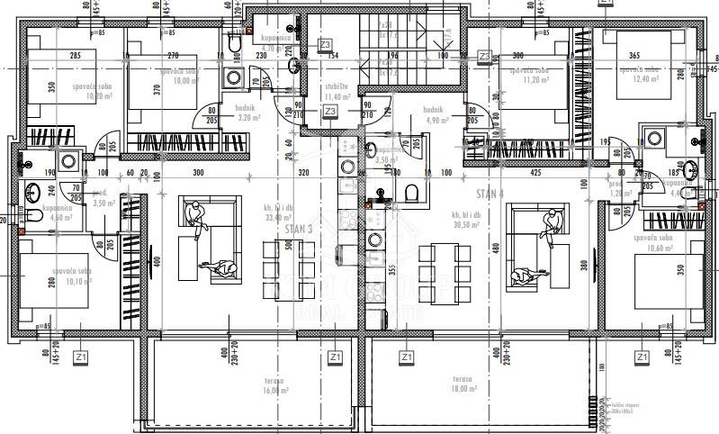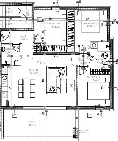 -kuhinja s blagovaonicom i dnevnim boravkom - površine 30,50 m2,