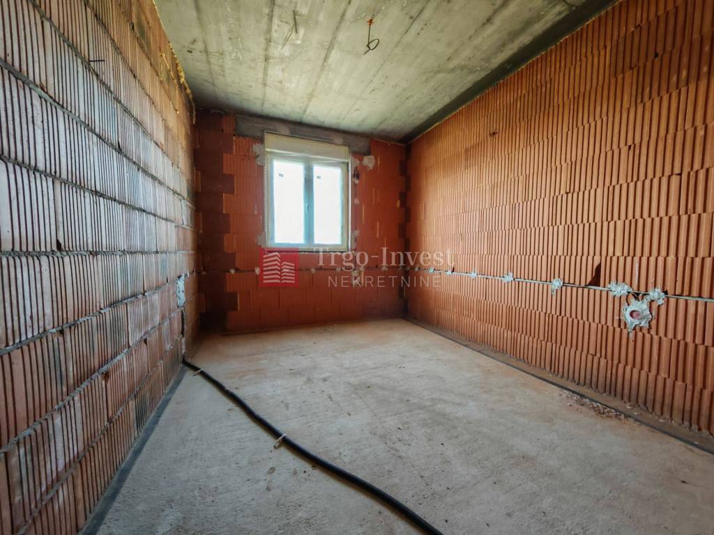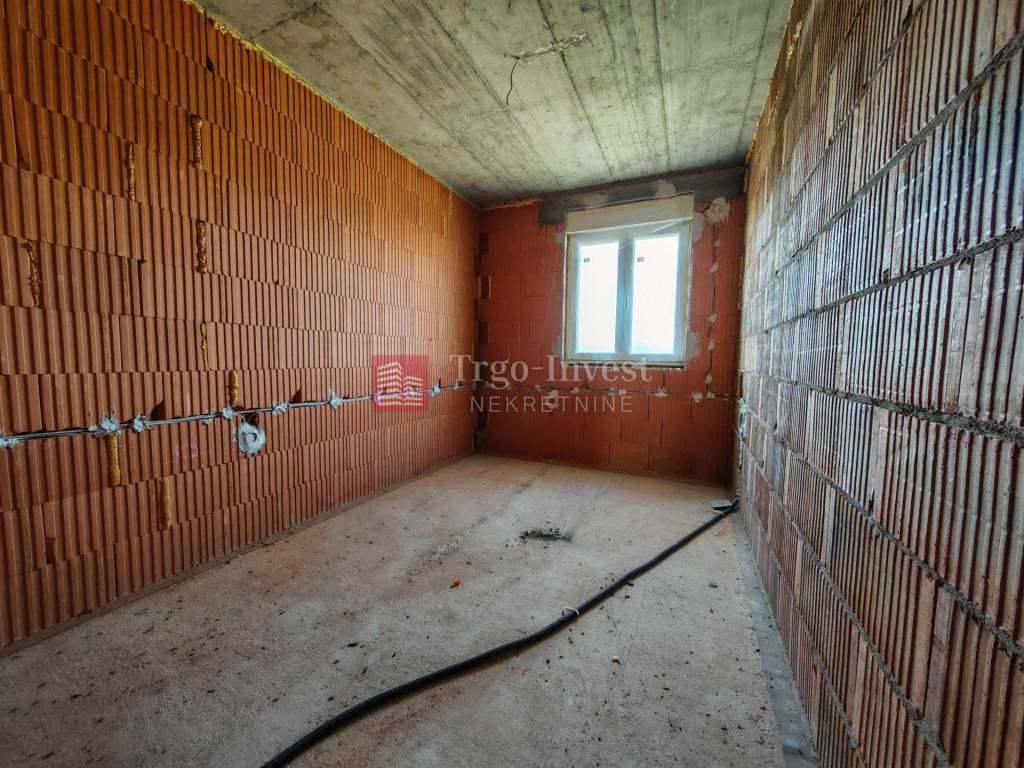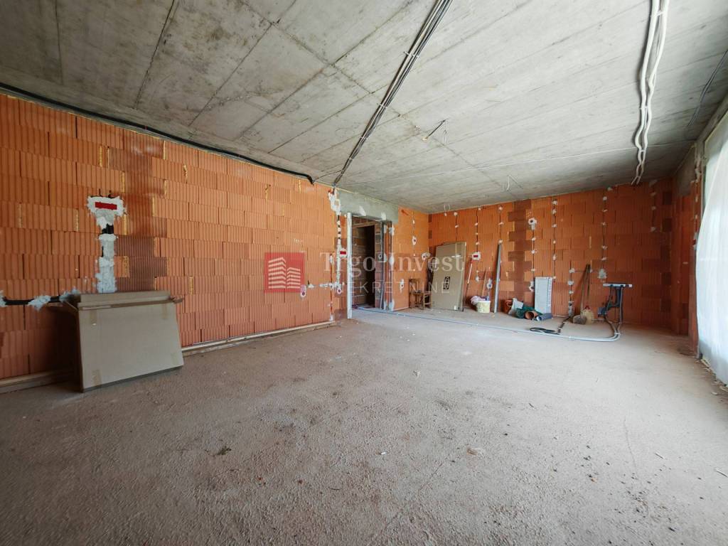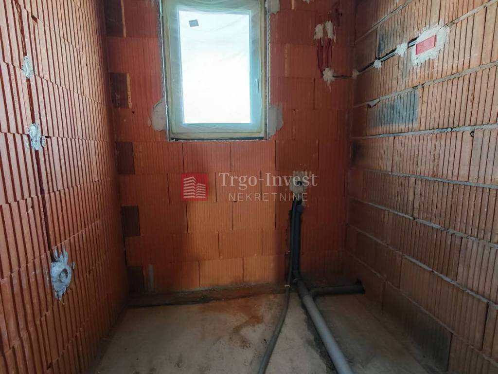 SPLITSKA ULICA (BUDAINKA) - prizemnica u roh-bau fazi neto površine 165 m2 koja se sastoji od garaže, trijema, hodnika,kuhinje, blagovaonice i dnevnog boravka, 3 spavaće sobe, vešeraja, kotlovnice, wc-a, garderobe, 2 kupaonice i terase te pomoćne zgrade u dvorištu. Provedene instalacije struje, vode, te djelomično i grijanja. Predviđeno je podno grijanje putem dizalice topline. Od infrastrukture kuća posjeduje priključke struje, vode i kanalizacije. Ugrađena troslojna PVC stolarija sa alu roletama. Garaža je namijenjena za dva vozila, ugrađena Hoermann garažna vrata. ČISTO VLASNIŠTVO.