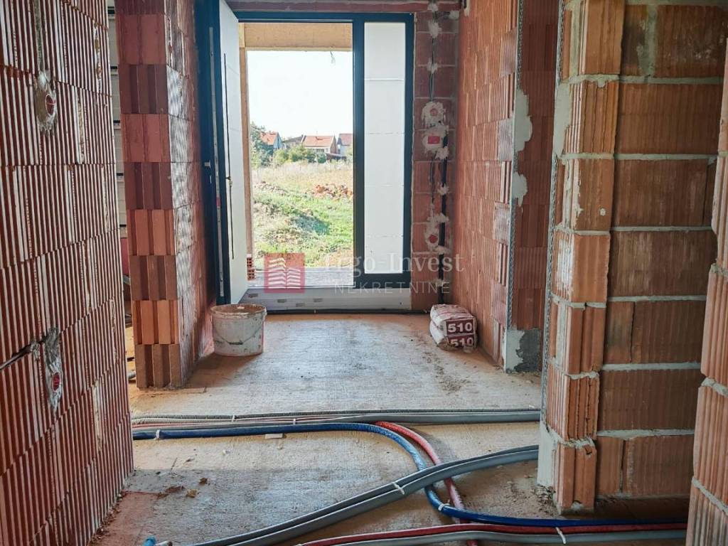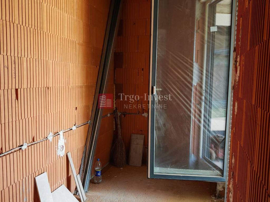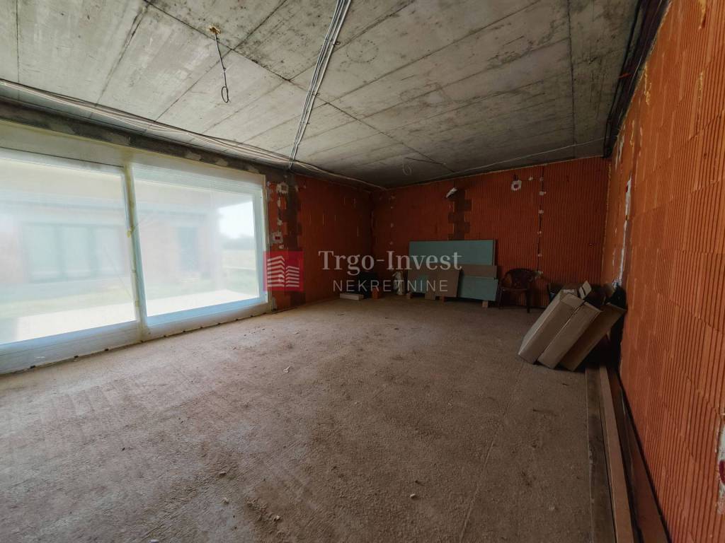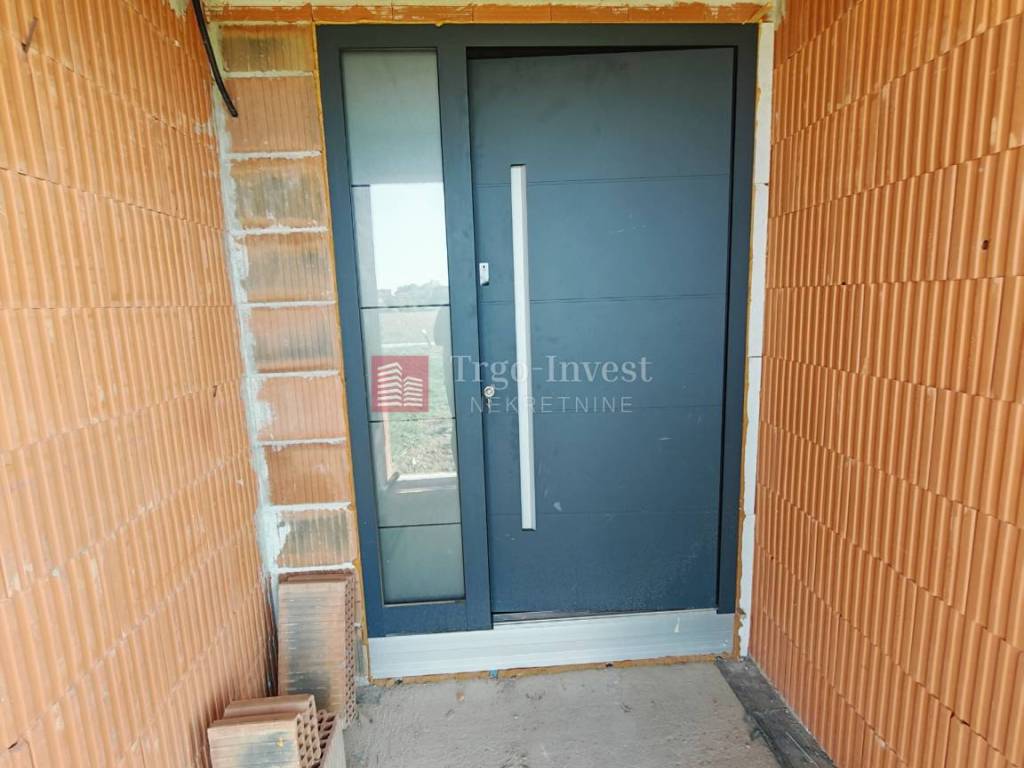 SPLITSKA ULICA (BUDAINKA) - prizemnica u roh-bau fazi neto površine 165 m2 koja se sastoji od garaže, trijema, hodnika,kuhinje, blagovaonice i dnevnog boravka, 3 spavaće sobe, vešeraja, kotlovnice, wc-a, garderobe, 2 kupaonice i terase te pomoćne zgrade u dvorištu. Provedene instalacije struje, vode, te djelomično i grijanja. Predviđeno je podno grijanje putem dizalice topline. Od infrastrukture kuća posjeduje priključke struje, vode i kanalizacije. Ugrađena troslojna PVC stolarija sa alu roletama. Garaža je namijenjena za dva vozila, ugrađena Hoermann garažna vrata. ČISTO VLASNIŠTVO.