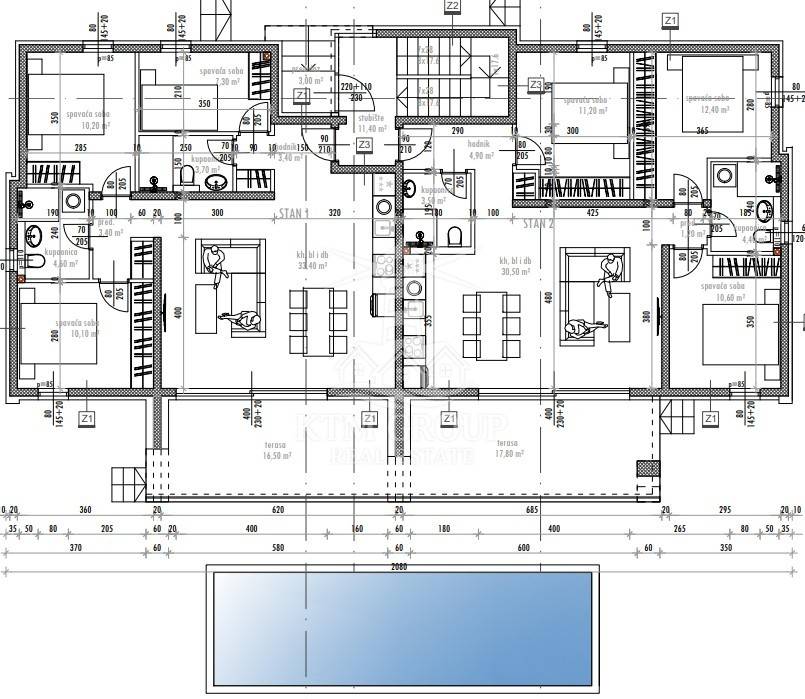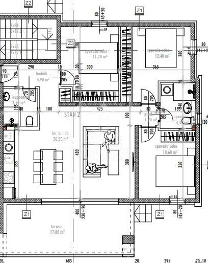 -kuhinja s blagovaonicom i dnevnim boravkom - površine 30,50 m2,