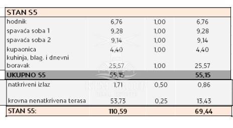 - krovna terasa površine 53,73 m2 i