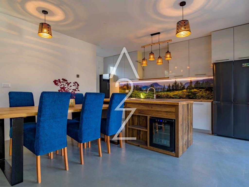 Vlasnici su stan opremali za sebe, tako da je sva oprema vrhunska- od kuhinje po mjeri, ugradbenih uređaji najvišeg ranga, dvostrukog frižidera, podnog grijanja u cijelom prostoru, klima uređaja, walk-in ormara, postavljenih sanitarija – sve je spremno da samo donesete ključeve.