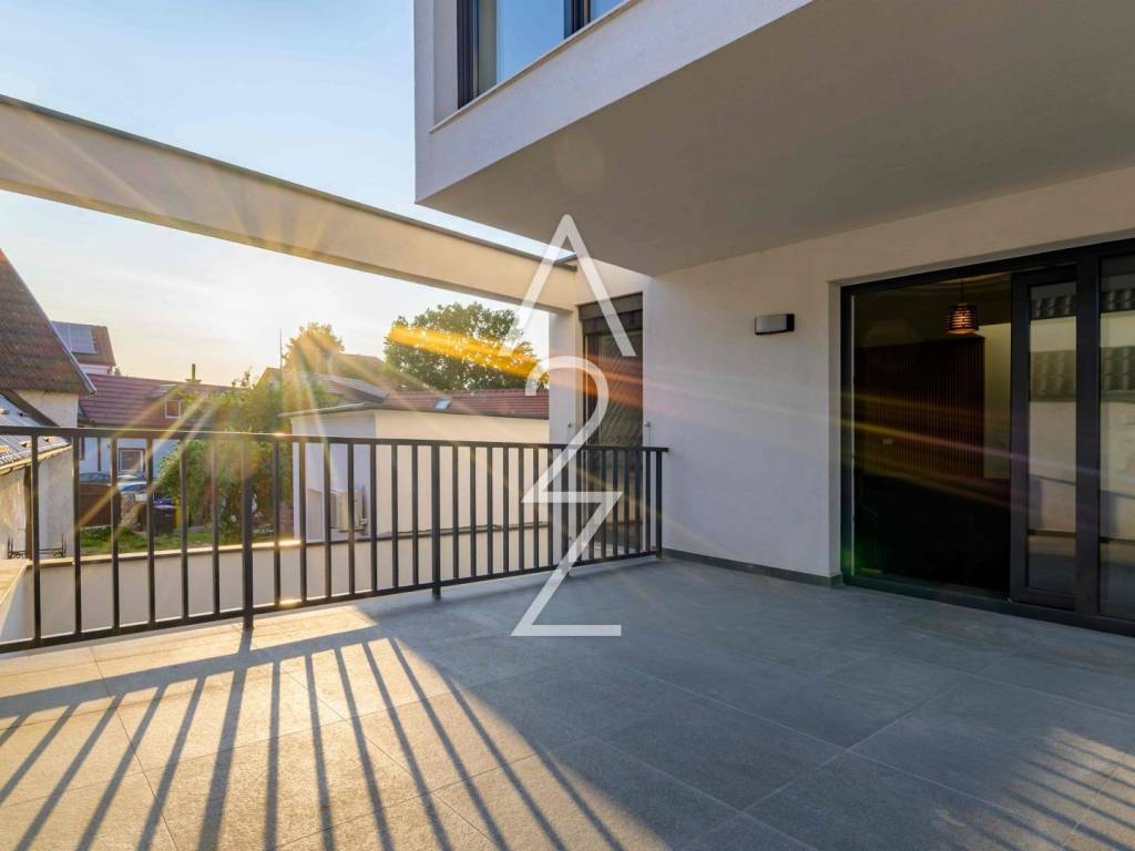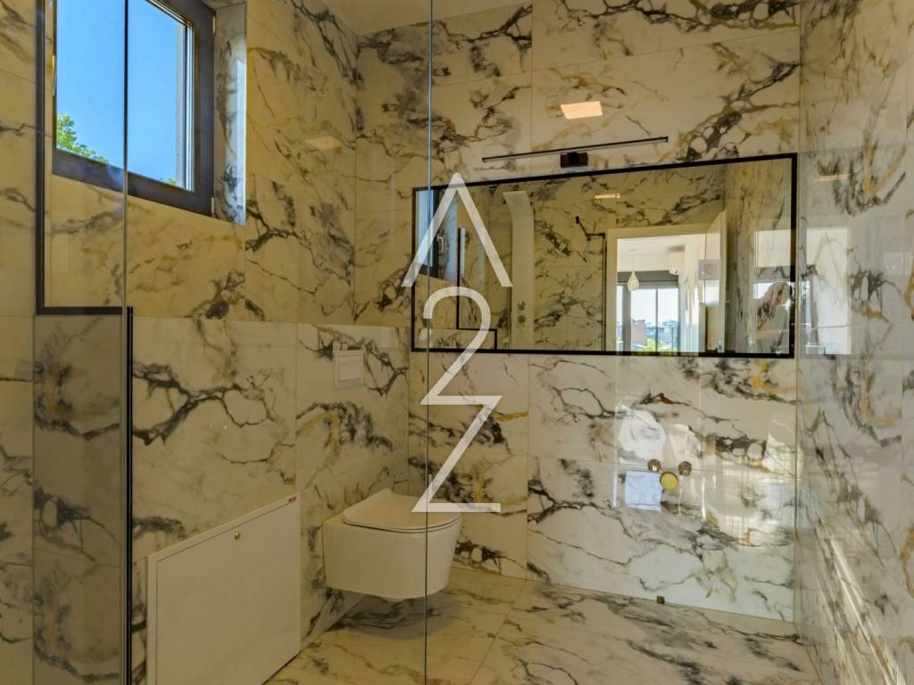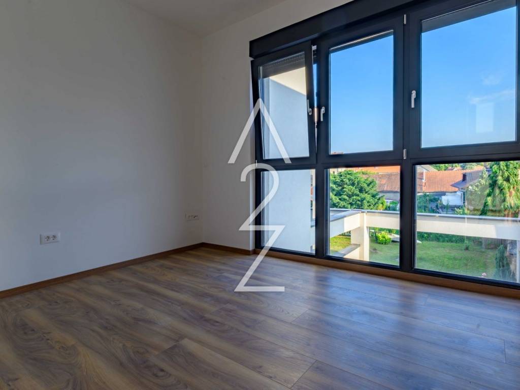 Svaki detalj ovog trosobnog stana promišljen je s ljubavlju – od prozračnog dnevnog boravka s izlazom na terasu, do elegantnih spavaćih soba s vlastitom kupaonicom i walk-in tušem. Tu je i krasna prostrana terasa, te jedna manja s pogledom na varaždinske krovove i crkve unaokolo.
