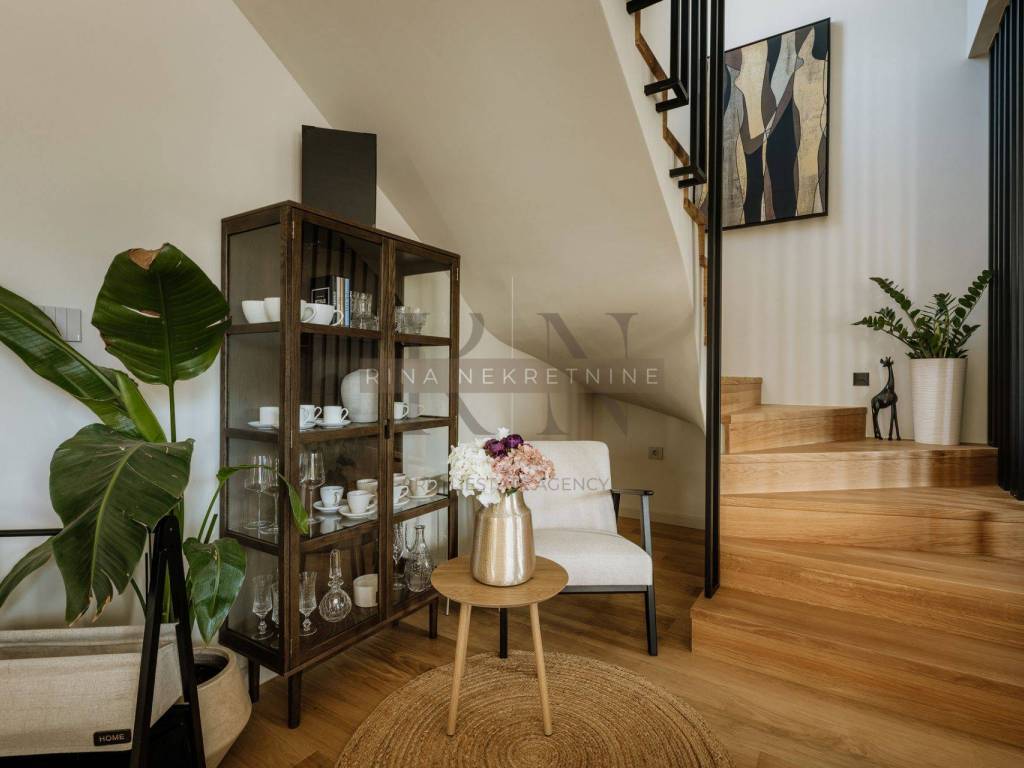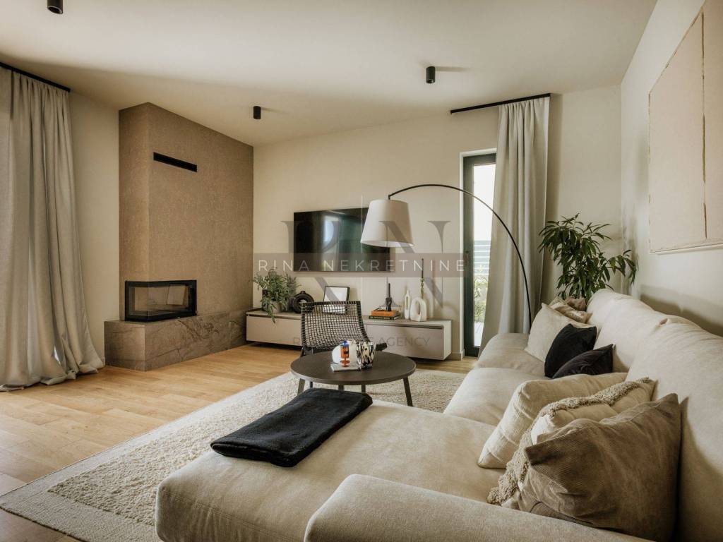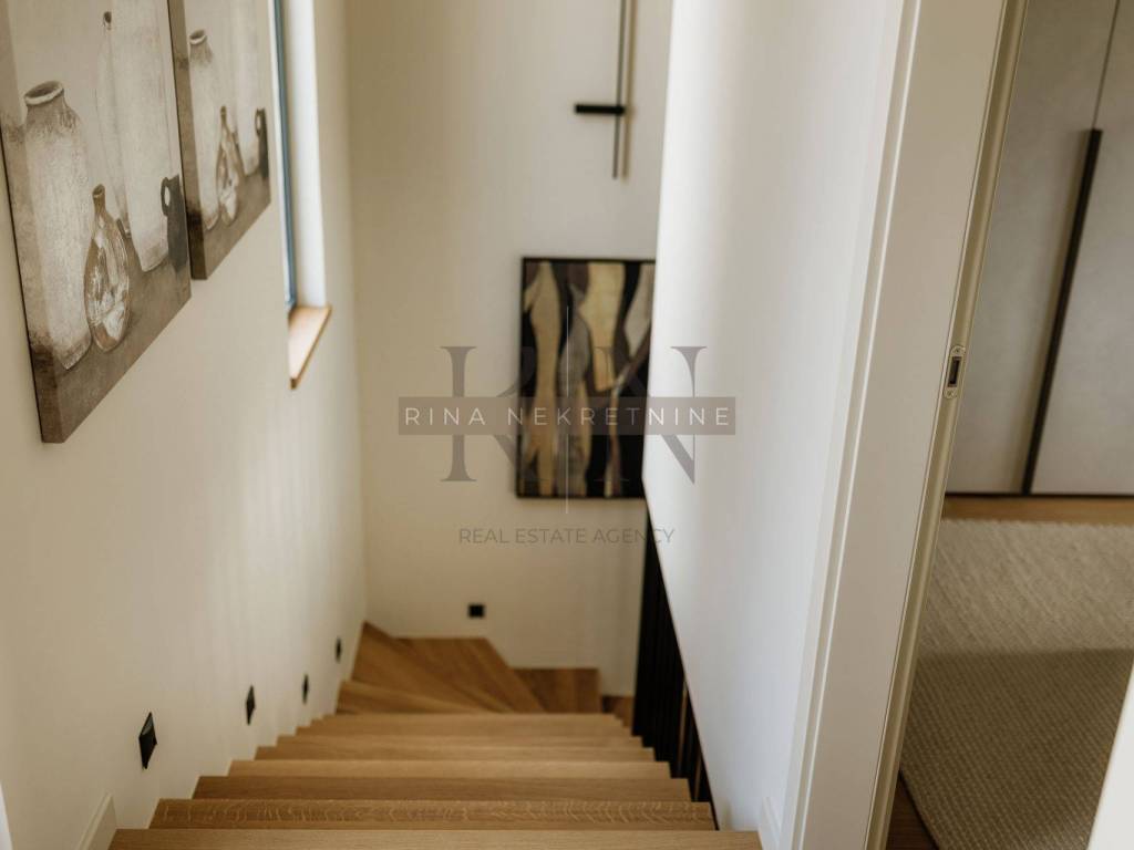 Kuća je kompletno moderno i vrlo kvalitetno uređena, visokokvalitetnim uređajima i namještajem po mjeri.