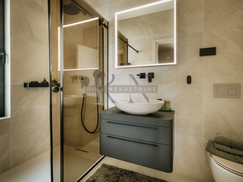 Kat: • Dvije prostrane spavaće sobe, svaka s vlastitom kupaonicom • Izlaz na natkrivenu terasu (18,5 m²)