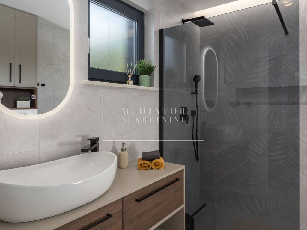 Ova moderna kuća nudi sve što je potrebno za udoban život – kvalitetnu gradnju, funkcionalan raspored, moderan dizajn i odličnu lokaciju u blizini mora, šetnica, škole i svih potrebnih sadržaja.