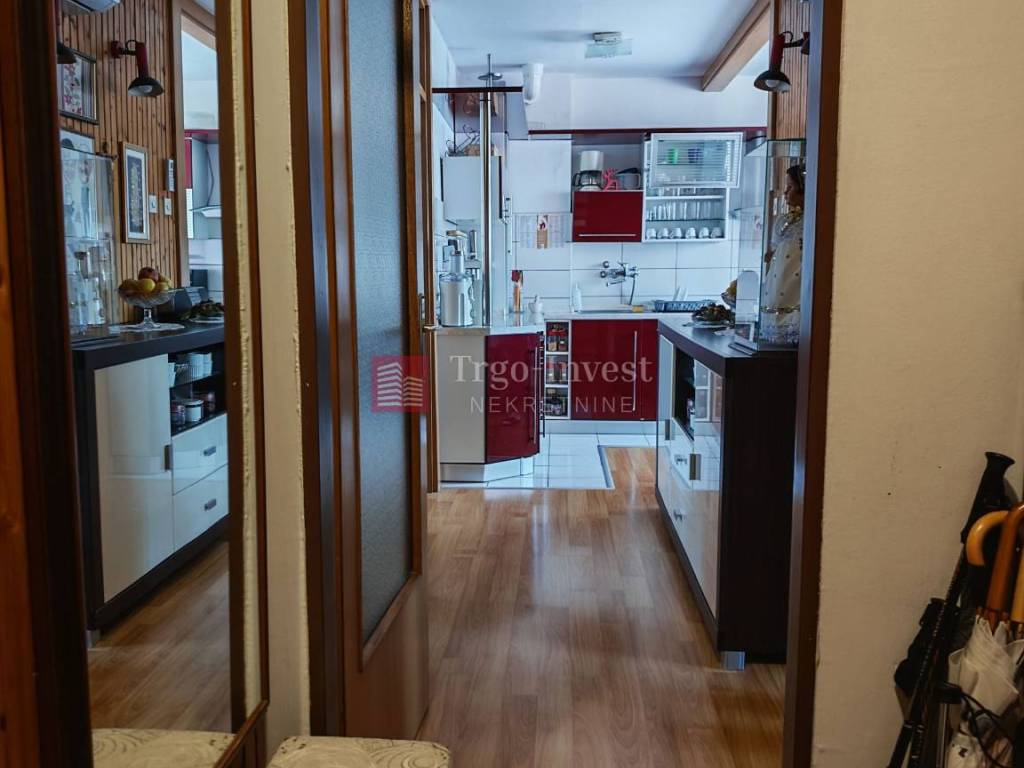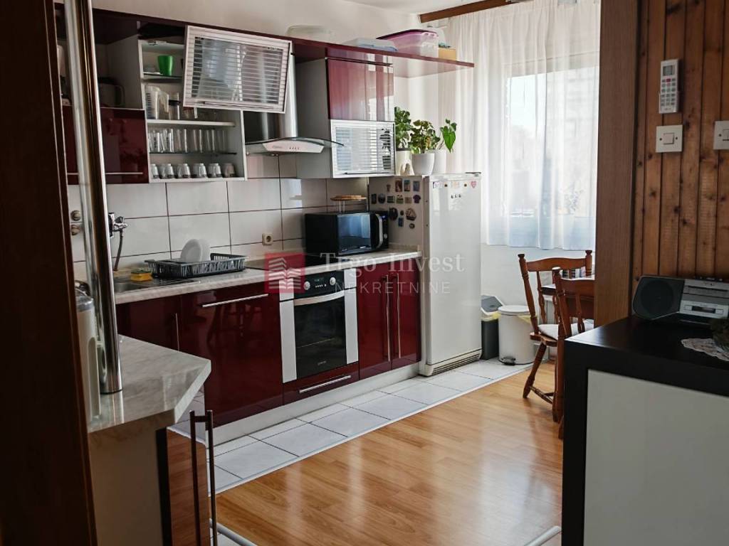 Stanu pripada i ostava (šupa) u podrumu zgrade. Od infrastukture stan posjeduje priključke vode, struje, kanalizacije. Centralno grijanje putem gradske toplane, klima uređaj. Kuhinja ostaje u cijeni stana.