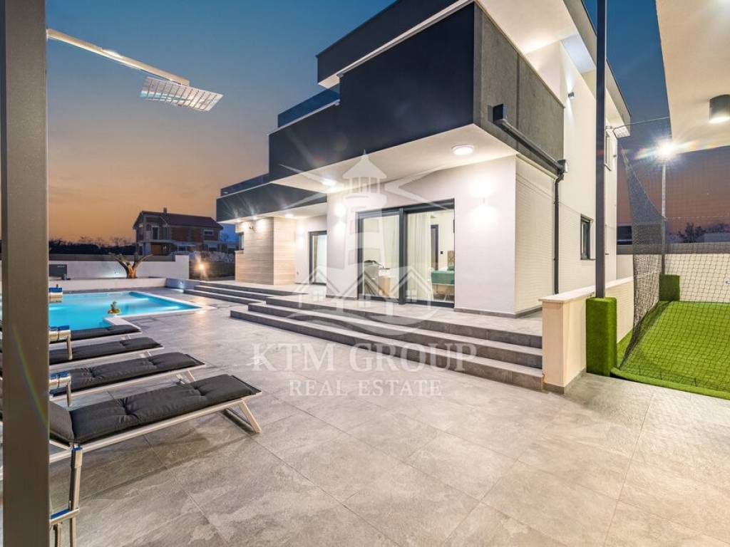 Dodatni sadržaji: - Pomoćni objekt s ljetnom kuhinjom, roštiljem, teretanom i WC-om - Osvijetljeno nogometno igralište ispred kuće - Prekrasna uređenost interijera i eksterijera kao i privatnost koju pruža mirno okruženje - Izvrsna prometna povezanost – neposredna blizina autoceste Zagreb–Split i zračne luke Zadar - Idealno za turistički najam tijekom cijele godine
