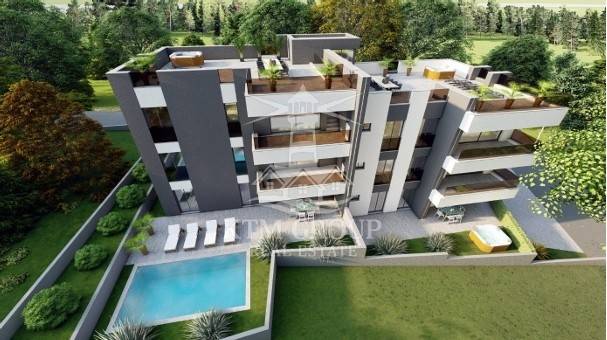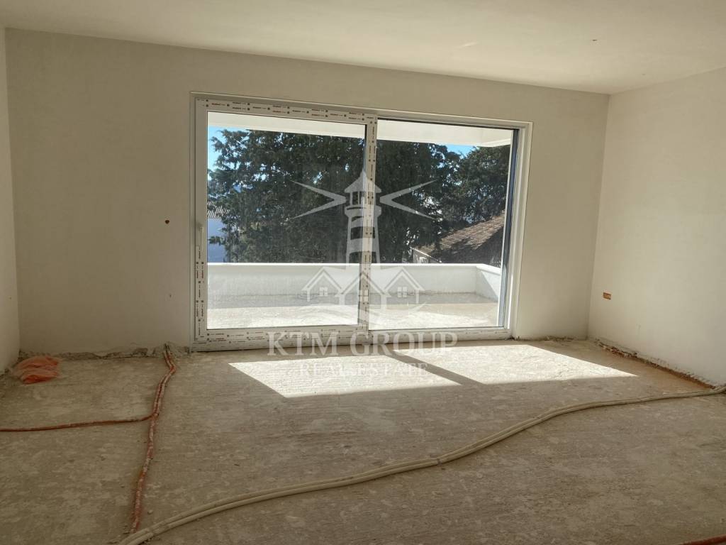 Stan se sastoji od hodnika, tri spavaće sobe od kojih je jedna s vlastitom kupaonicom, dodatne kupaonice, kuhinje povezane s blagovaonicom i dnevnim boravkom te natkrivene lođe. Opremljen je podnim električnim grijanjem u svim prostorijama osim spavaćih soba te s četiri klima uređaja – po jedan u svakoj sobi i jedan u dnevnom boravku. Ugrađena je PVC stolarija s troslojnim staklom, električnim roletama i komarnicima. Podovi su obloženi parketom u spavaćim sobama, dok su u ostatku stana postavljene kvalitetne keramičke pločice. Zgrada je građena od ciglenog termo bloka u kombinaciji s betonskim zidom, a fasada ima 12 cm stiroporne izolacije. Priključena je na kanalizacijski sustav. Uz stan dolaze dva parkirna mjesta te spremište u podrumu.