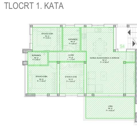 Stan S4 se nalazi na 1.katu zgrade i sastoji se od: