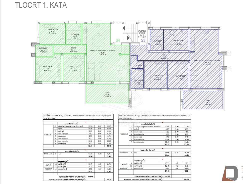 Sveukupna netto korisna površina stana i njegovih pripadaka je 102,23 m2.