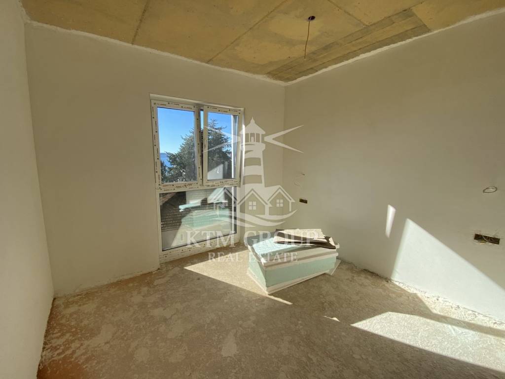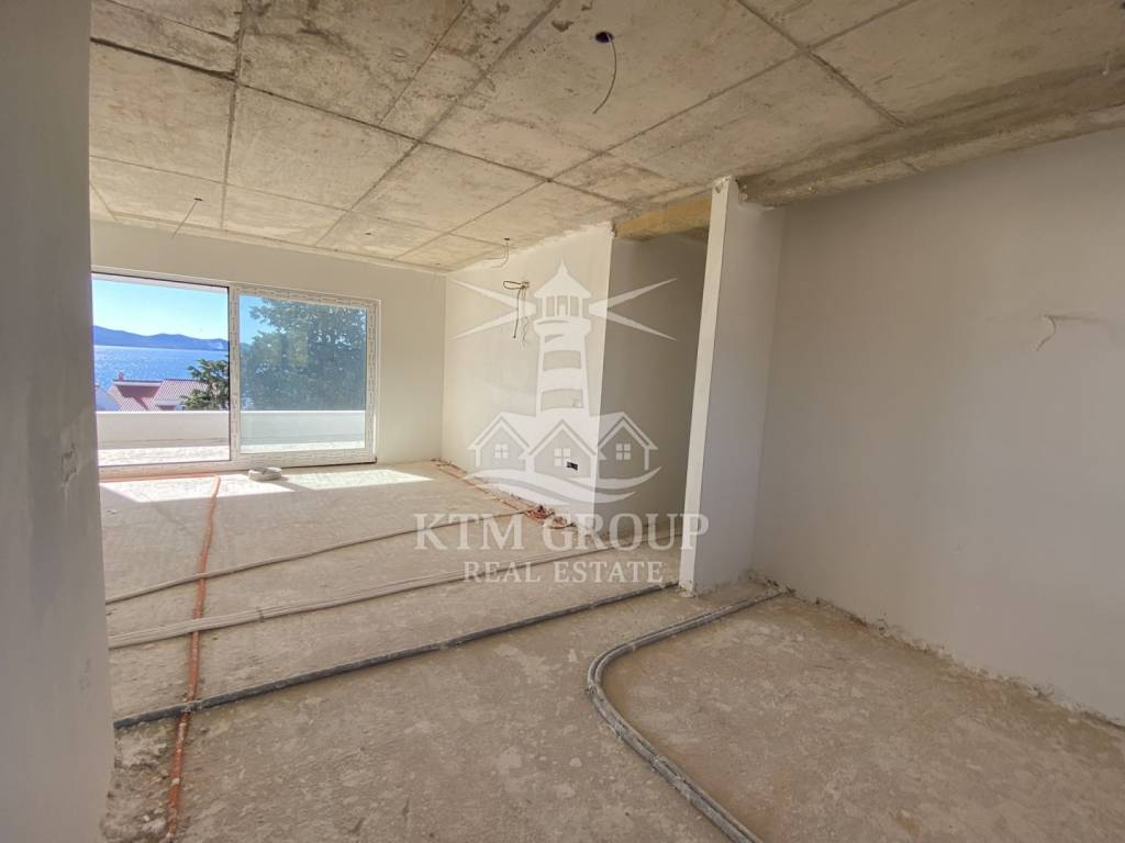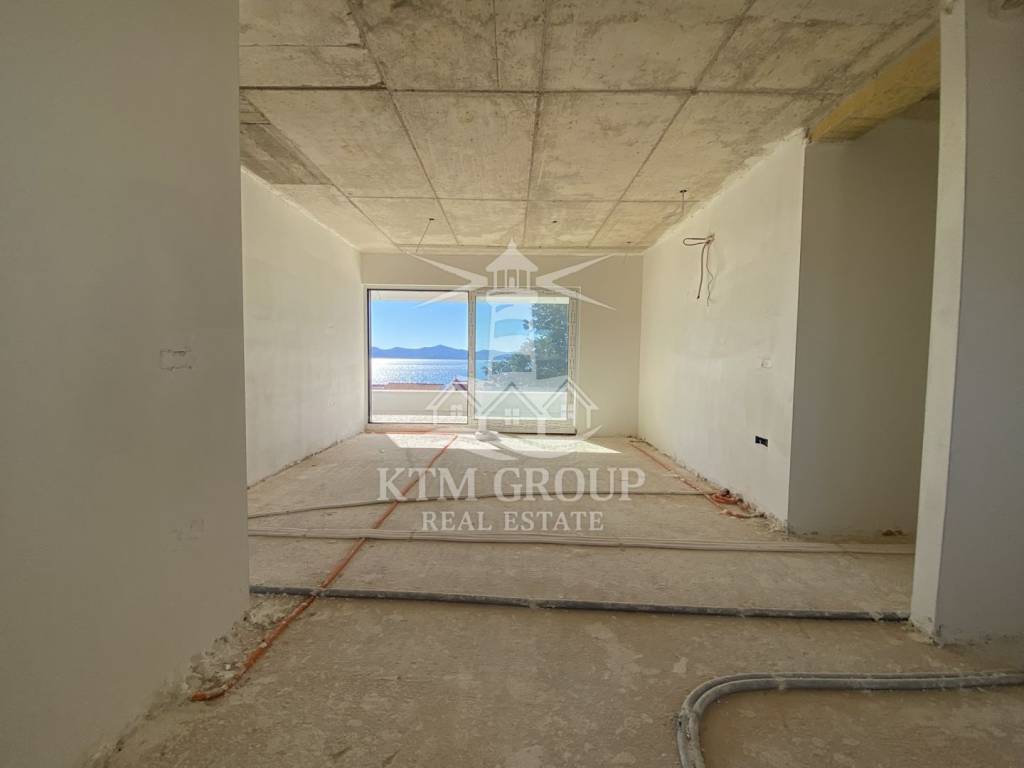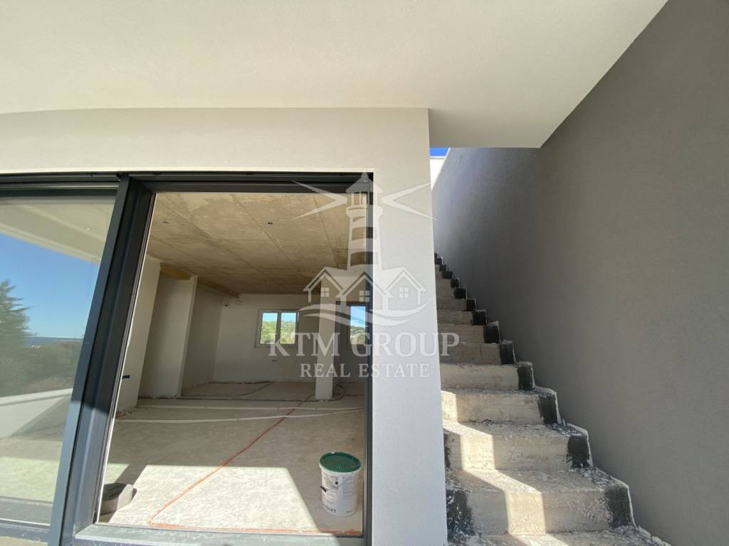 Stan se sastoji od hodnika, tri spavaće sobe od kojih je jedna s vlastitom kupaonicom, dodatne kupaonice, kuhinje povezane s blagovaonicom i dnevnim boravkom te natkrivene lođe i krovne terase od 102 m2 s prekrasnim pogledom na more. Opremljen je podnim električnim grijanjem u svim prostorijama osim spavaćih soba te s četiri klima uređaja – po jedan u svakoj sobi i jedan u dnevnom boravku. Ugrađena je PVC stolarija s troslojnim staklom, električnim roletama i komarnicima. Podovi su obloženi parketom u spavaćim sobama, dok su u ostatku stana postavljene kvalitetne keramičke pločice. Zgrada je građena od ciglenog termo bloka u kombinaciji s betonskim zidom, a fasada ima 12 cm stiroporne izolacije. Priključena je na kanalizacijski sustav. Uz stan dolaze dva parkirna mjesta te spremište u podrumu.