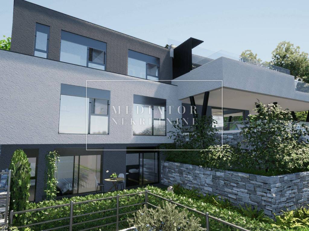 U ponudi Mediator nekretnina ističemo luksuzni stan na prvome katu novogradnje koji se nalazi na elitnoj lokaciji u gradu Rijeci. Stan je koncipiran kao 3sb + dnevni boravak, stan ima prekrasnu južnu terasu, a na sjeveru se nalazi vrtna terasa. Stan će biti opremljen vrhunskim materijalima poput Daikin dizalica topline za podno grijanje i 4 unutarnje jedinice za hlađenje, te će grijanje i hlađenje biti automatski regulirajuće u svakoj prostoriji zasebno. Ono što ovaj stan čini posebnim je okućnica koja se prostire na 179,07 m2 uz grijani bazen od 16,28 m2 s protustrujnim plivanjem, plus što ima 3 parkirna mjesta od koje će jedno biti opremljeno vlastitom punionicom za električna vozila, dok su dva mjesta natkrivena .