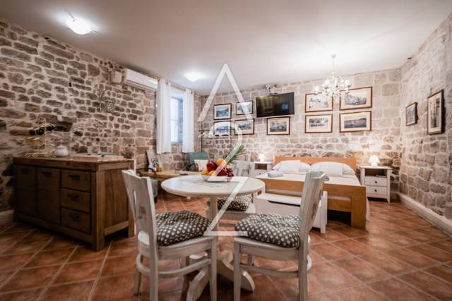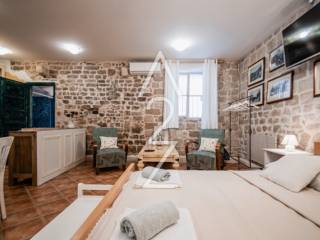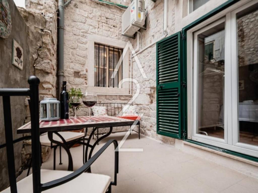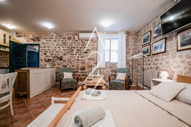 U samoj jezgri grada Šibenika, u kamenoj kući, na prodaju je stan od 86 m2 koji je podijeljen u dva zasebna studio apartmana koji funkcioniraju kao uhodani posao najma. Njihove ocjene na Bookingu su zavidnih 9,1 i prodaju se kompletno namješteni te sa svim što je potrebno da se najam dalje nastavi. Dakle, na prodaju nije samo nekretnina, već i Booking account i posao sa izvrsnim rezultatima na lokaciji bez premca- 5 minuta pješke od Katedrale Sv. Jakova, 100 m od glavnog trga Poljana i 65 metara do mora!