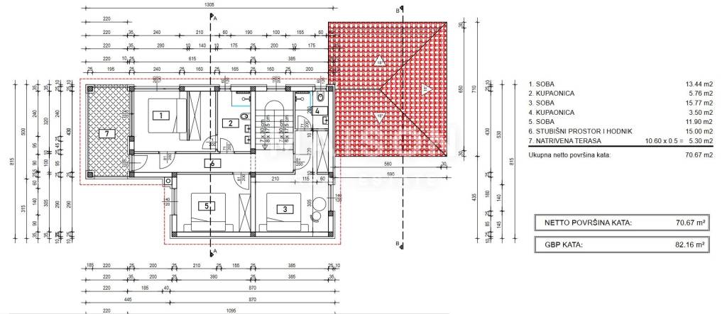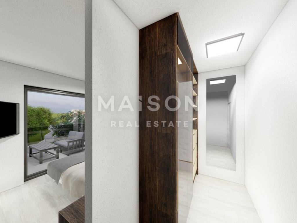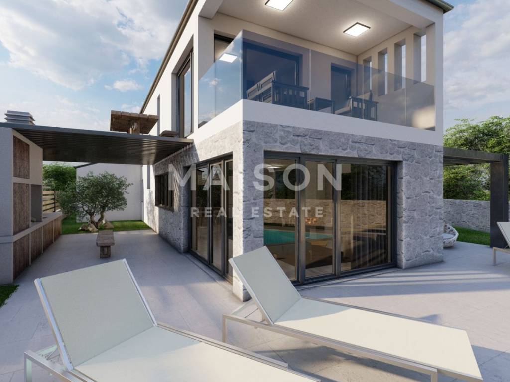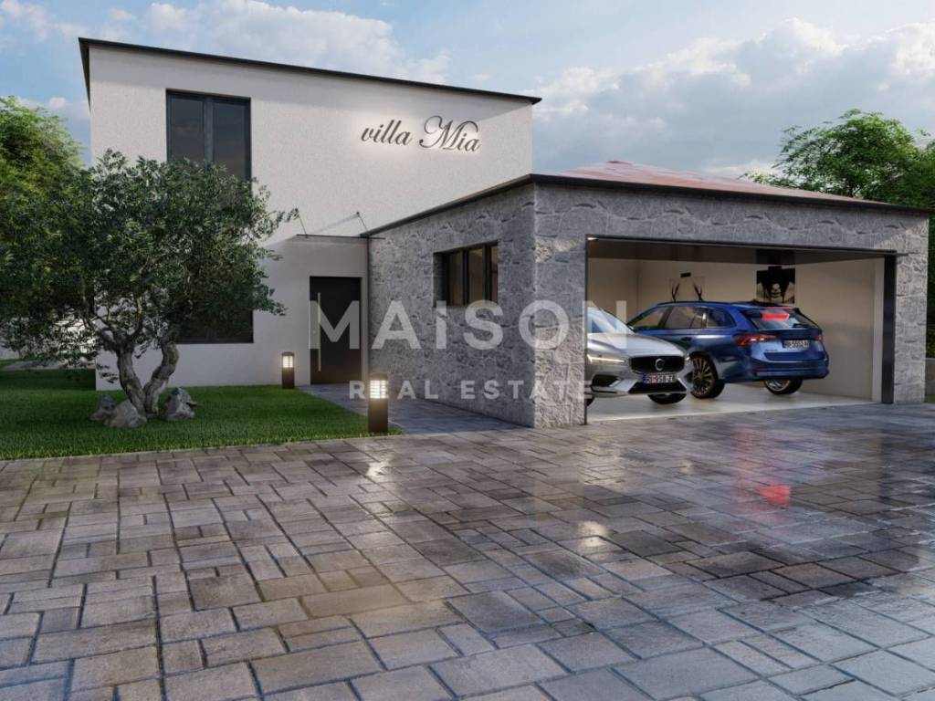 Okućnica površine 450 m² pruža idealan prostor za opuštanje, s bazenom i velikom terasom, a uz garažu su predviđena i dodatna dva vanjska parkirna mjesta. U gradnji se koriste visokokvalitetni materijali – sve prostorije će biti klimatizirane, bit će ugrađeno električno podno grijanje, ALU rolete s kliznim stijenkama, a fasada i vanjski detalji oplemenjeni prirodnim kamenom, što dodatno naglašava eleganciju i dojam luksuza.