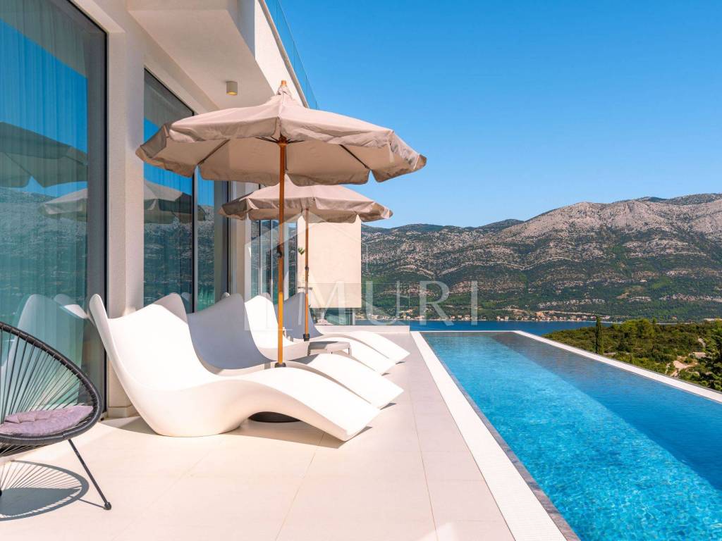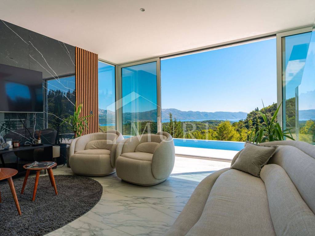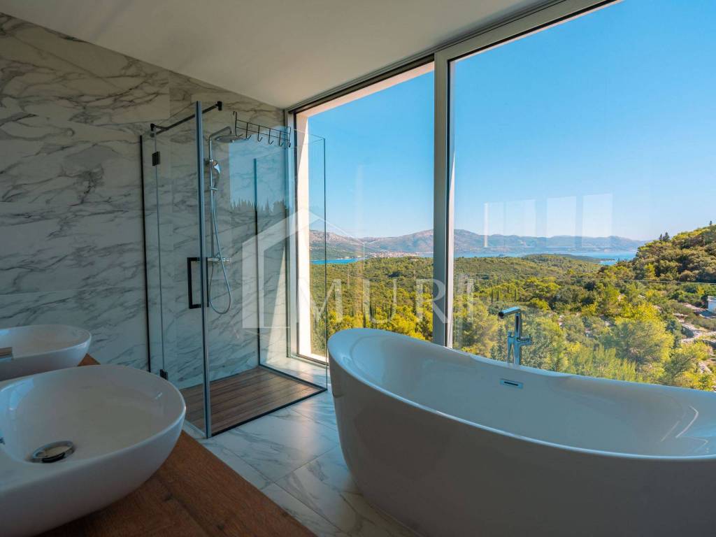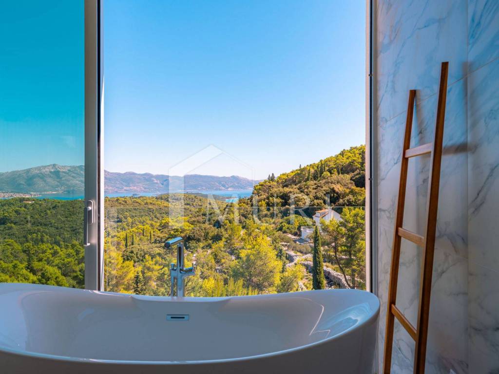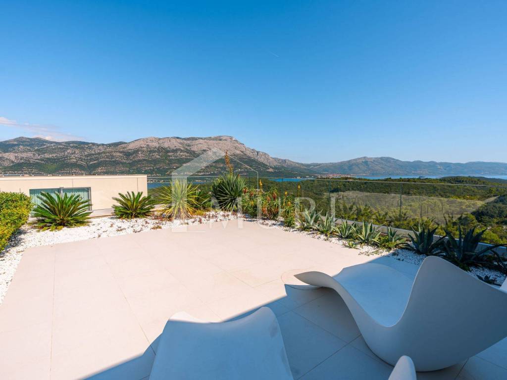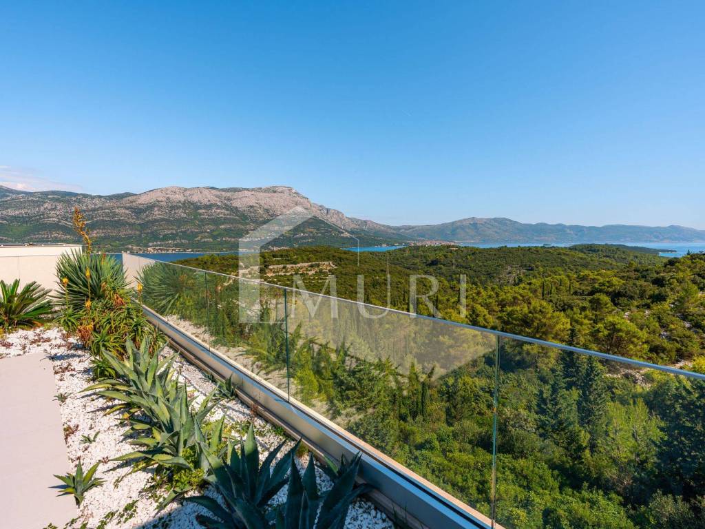 Predstavljamo vam luksuznu vilu smještenu u Žrnovu na otoku Korčuli. Ova prekrasna nekretnina prostire se na četiri etaže s bruto površinom od 360 m² i nalazi se na parceli od 510 m². Vila je udaljena samo 800 metara od mora, pružajući zadivljujuće poglede na more, bujnu šumu, poluotok Pelješac i korčulanski arhipelag.
