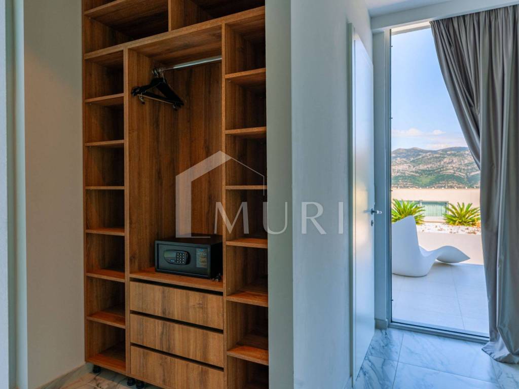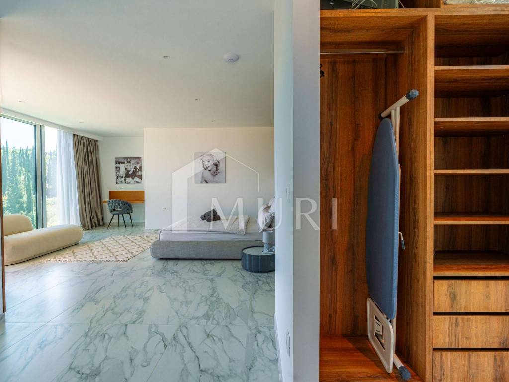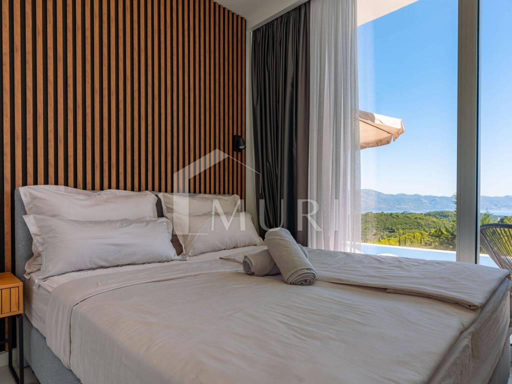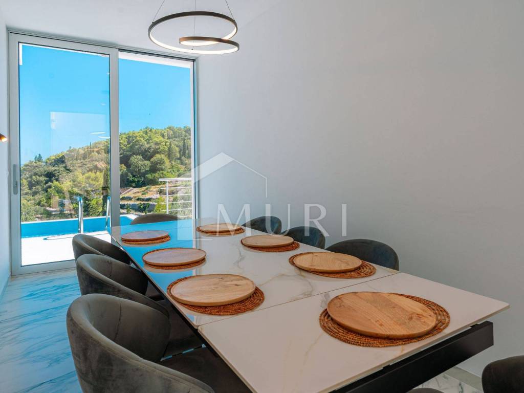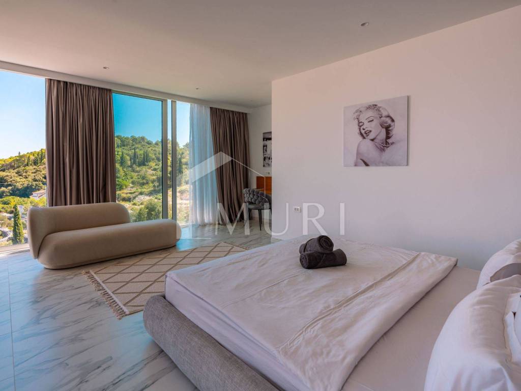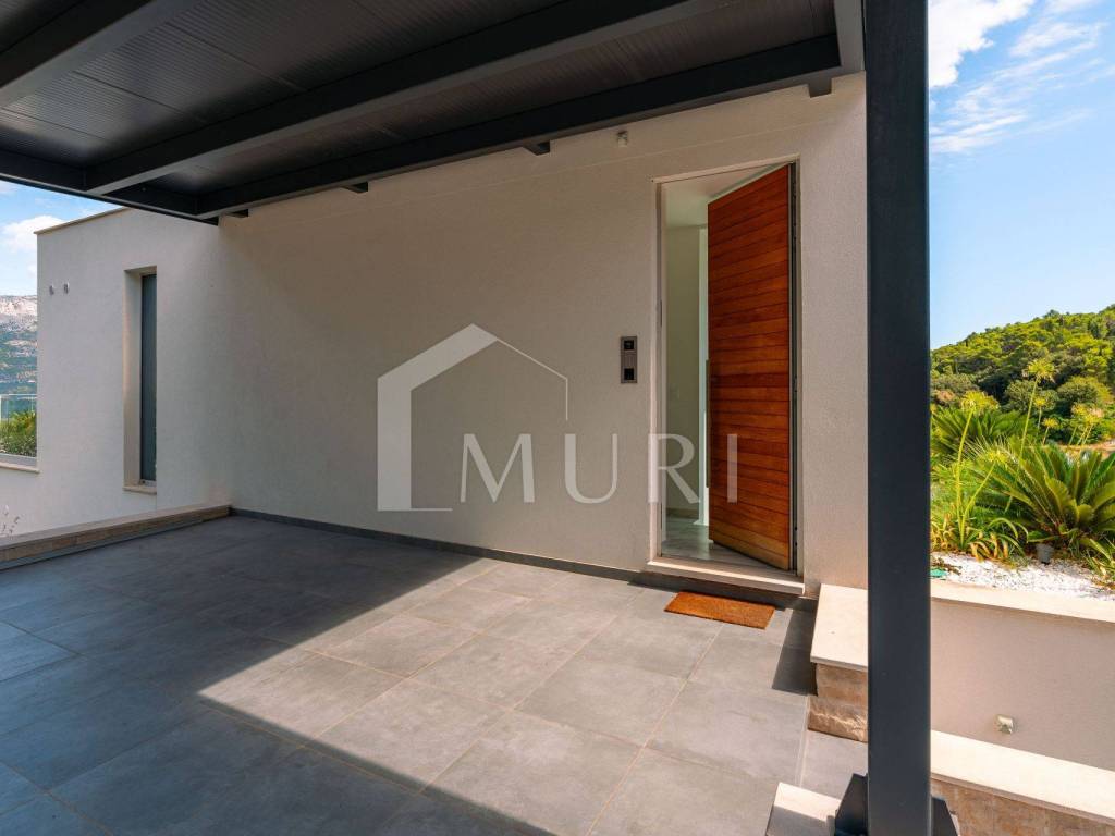 Predstavljamo vam luksuznu vilu smještenu u Žrnovu na otoku Korčuli. Ova prekrasna nekretnina prostire se na četiri etaže s bruto površinom od 360 m² i nalazi se na parceli od 510 m². Vila je udaljena samo 800 metara od mora, pružajući zadivljujuće poglede na more, bujnu šumu, poluotok Pelješac i korčulanski arhipelag.