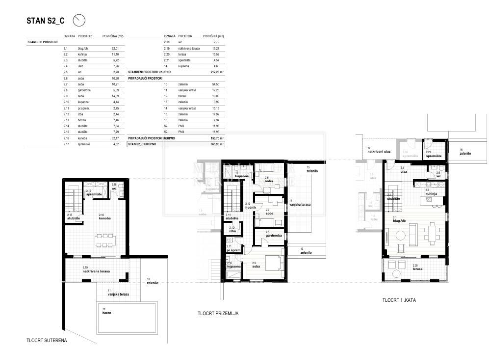 RIJEKA, KOSTRENA – ekskluzivan stan od 212,23 m² u novogradnji, s očaravajućim pogledom na more, bazenom i pripadajućom okućnicom od 153,70 m² (oznaka S2-C).