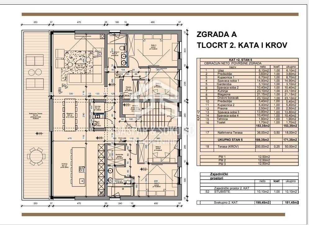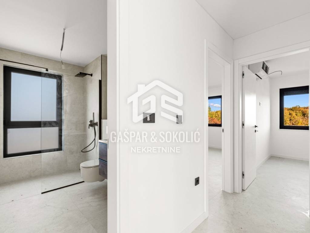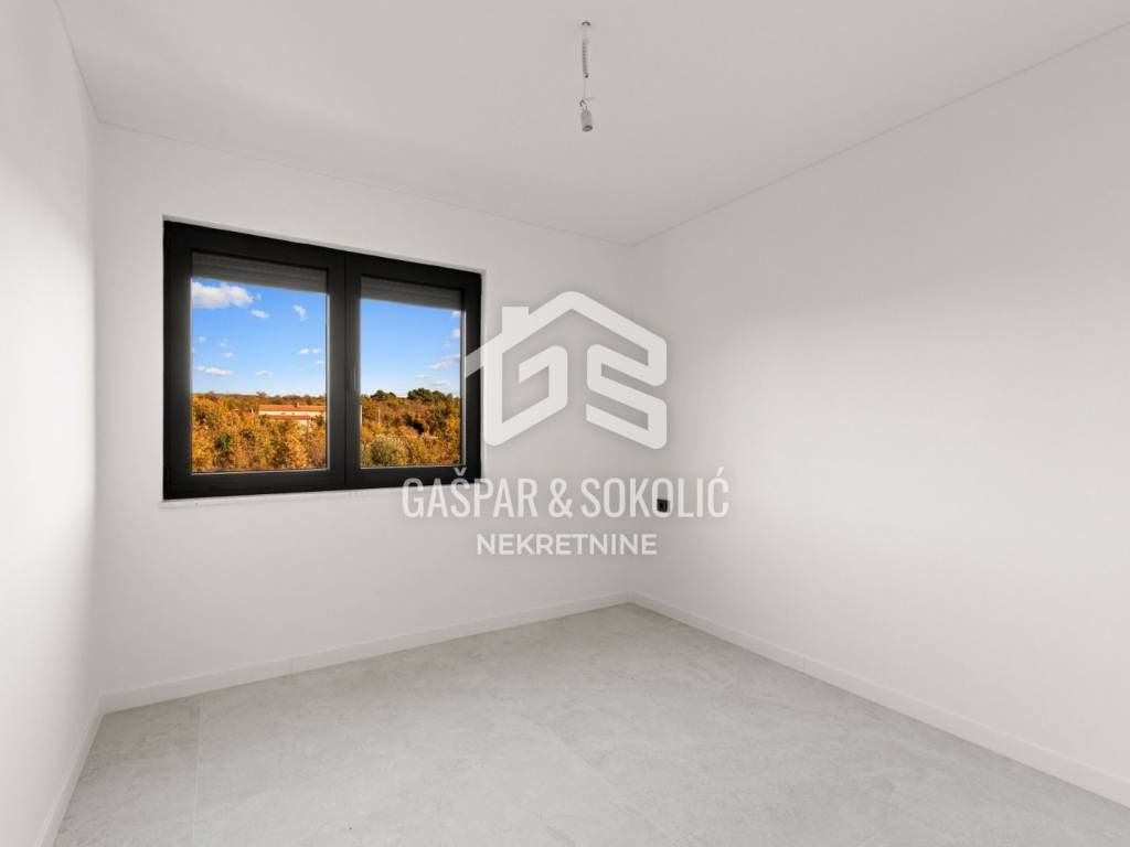 Na mirnoj lokaciji u mjestu Vrvari, nadomak Poreča i svega 2,7 km od mora, prodaje se moderan stan u suvremenoj novogradnji ukupne površine 231 m². Ovaj pažljivo osmišljen stan nudi idealan spoj udobnosti i funkcionalnosti, pružajući sve što je potrebno za kvalitetan život. Prostor se sastoji od ulaznog dijela koji vodi u prostrani dnevni boravak s blagovaonicom i kuhinjom, iz kojeg se izlazi na prekrasnu natkrivenu terasu, savršenu za opuštanje i uživanje u miru. Stan četiri udobne spavaće sobe, dvije moderne kupaonice s visokokvalitetnim sanitarijama, odvojeni toalet te praktičnu garderobu koja osigurava dodatni prostor za pohranu.