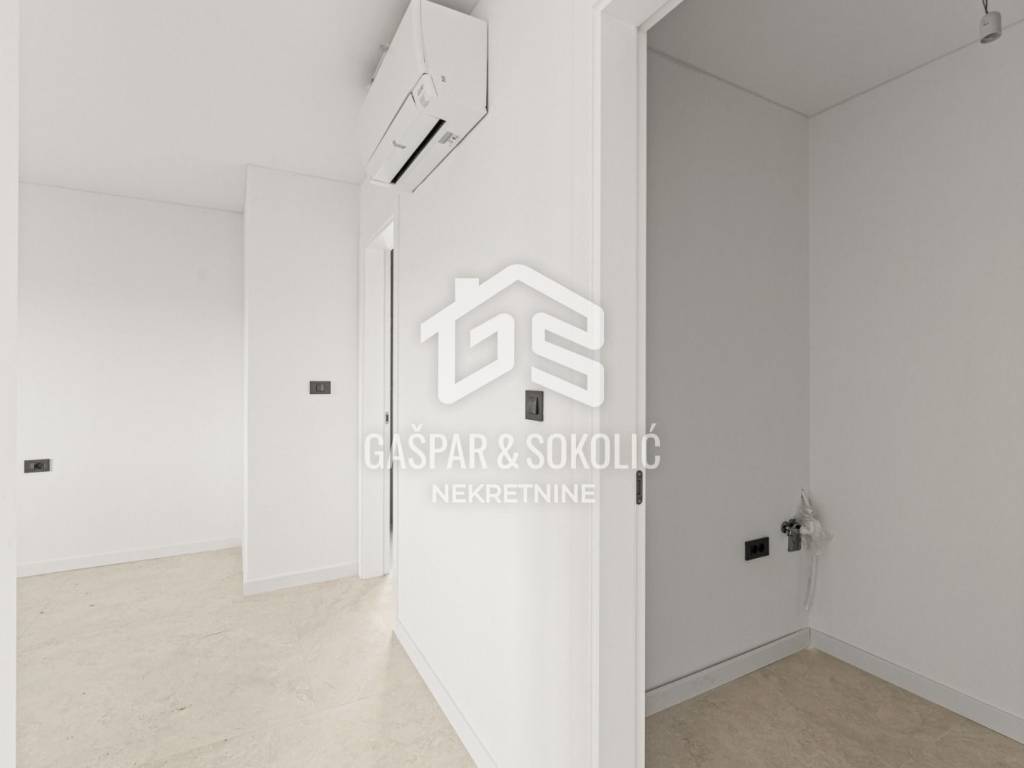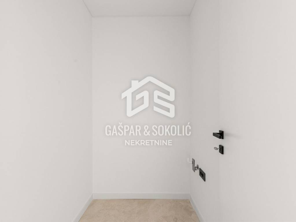 Pripadaju mu i četiri privatna parkirna mjesta, dok sama gradnja objekta uključuje upotrebu vrhunskih materijala prve klase. Sustav grijanja i hlađenja temeljen je na energetski učinkovitoj toplinskoj pumpi koja pruža ugodnu klimu uz niske režijske troškove. Smješten u mirnom okruženju, ovaj stan idealan je za obiteljski život.