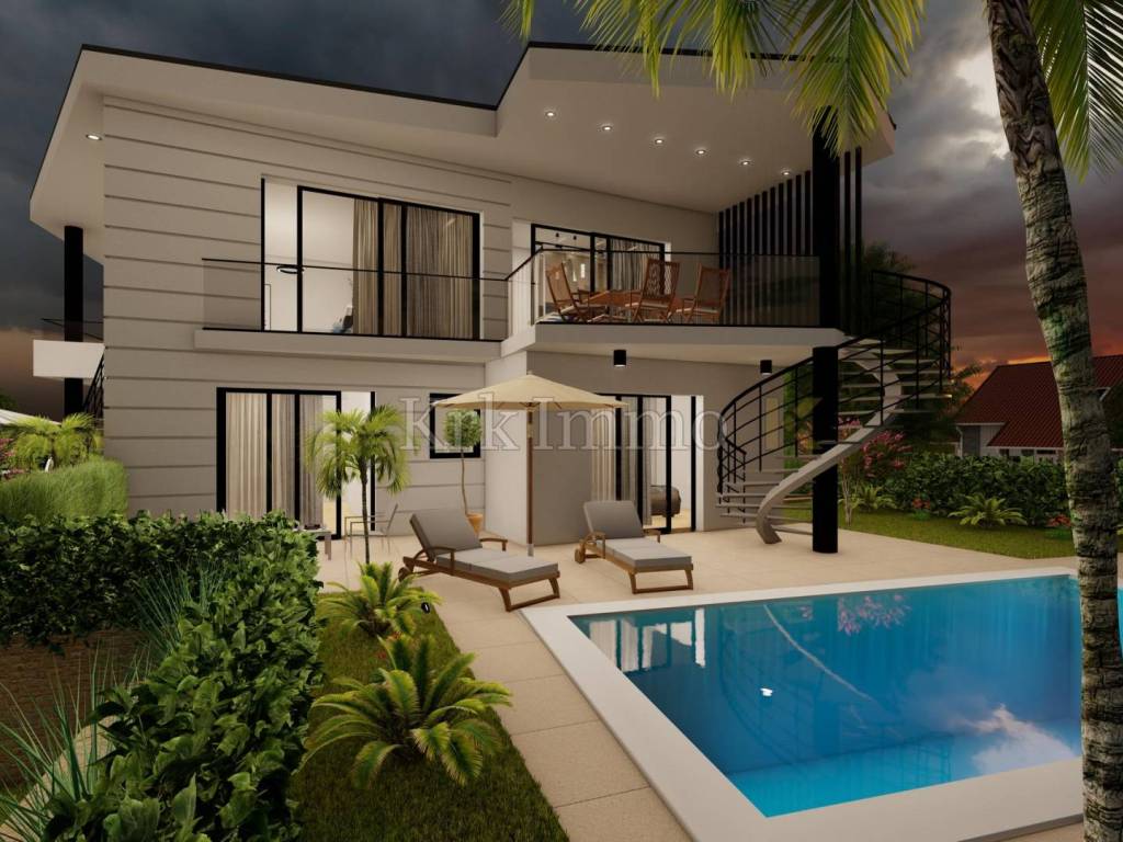 Vrhunska dvojna kuća s bazenom blizu mora. Nekretnine Malinska