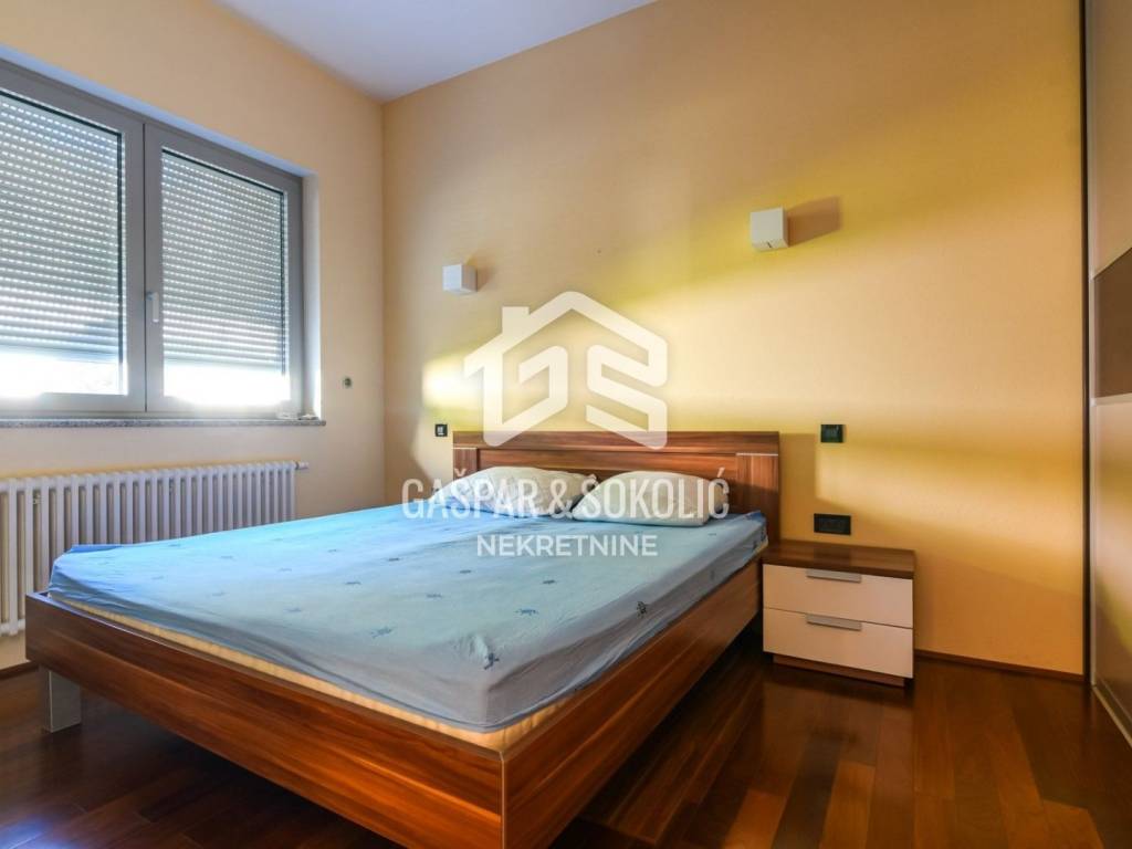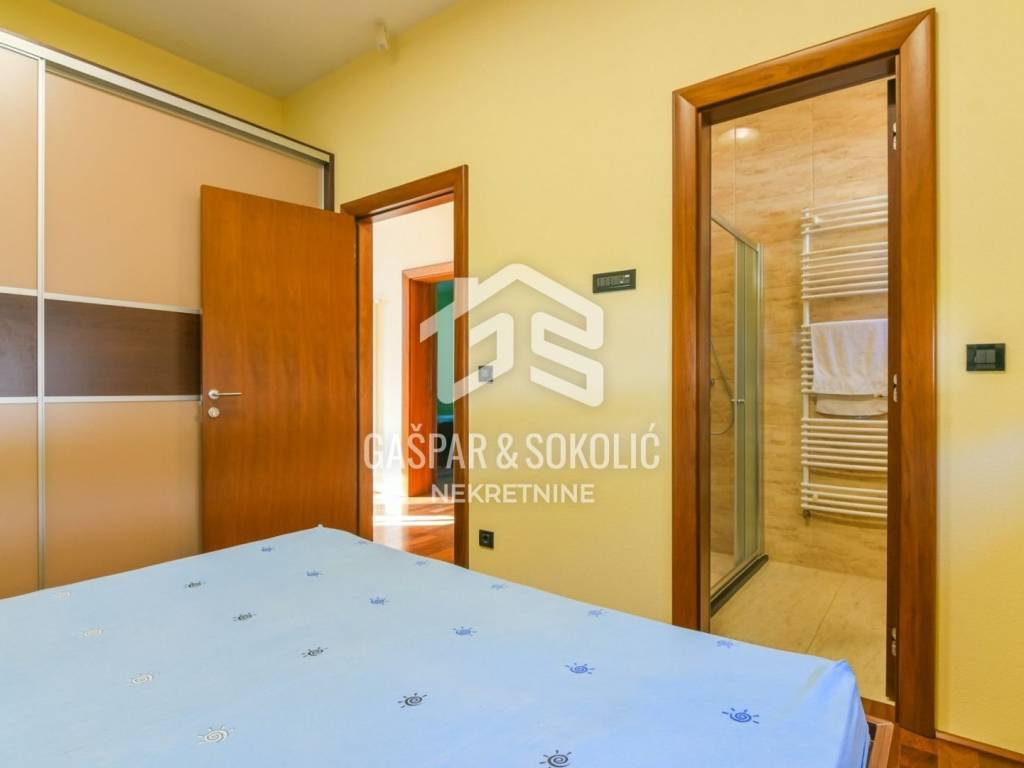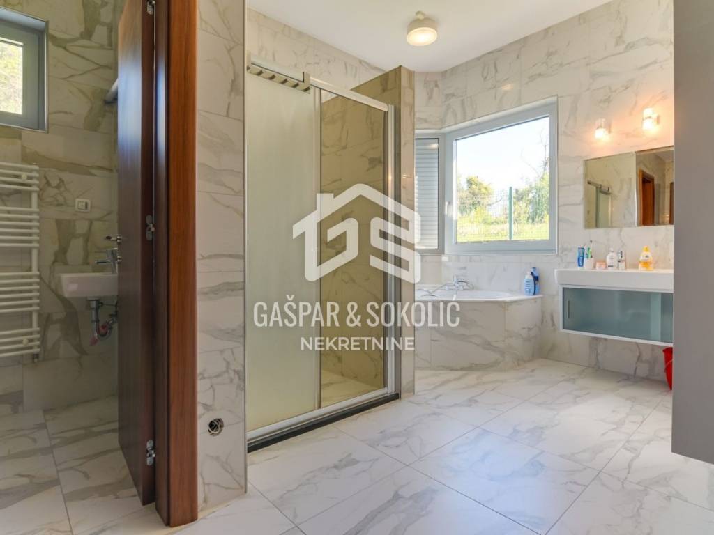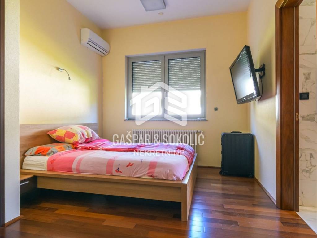 Na istoj etaži u drugom dijelu kuće nalazi se pet soba, od kojih tri imaju vlastite kupaonice, dok dvije sobe dijele jednu prostranu kupaonicu. Spavaći i dnevni dio kuće su odvojeni atrijem i jednom prolaznom sobom koja može poslužiti kao radni kutak ili dodatni prostor za smještaj.