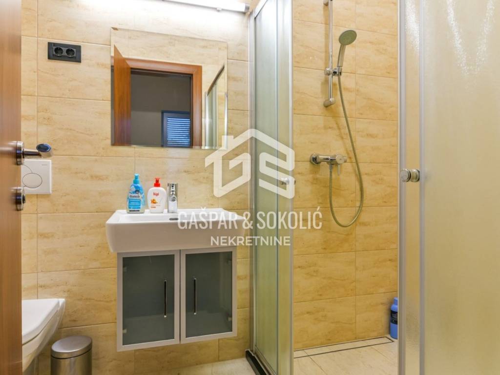 Kuća je koncipirana na način koji nudi izvanrednu funkcionalnost i udobnost. U podrumskoj etaži nalazi se garaža za 2 automobila, prostorija koja može poslužiti kao fitness prostorija ili konoba, te tri dodatne prostorije koje služe kao skladište, uz dodatni WC.