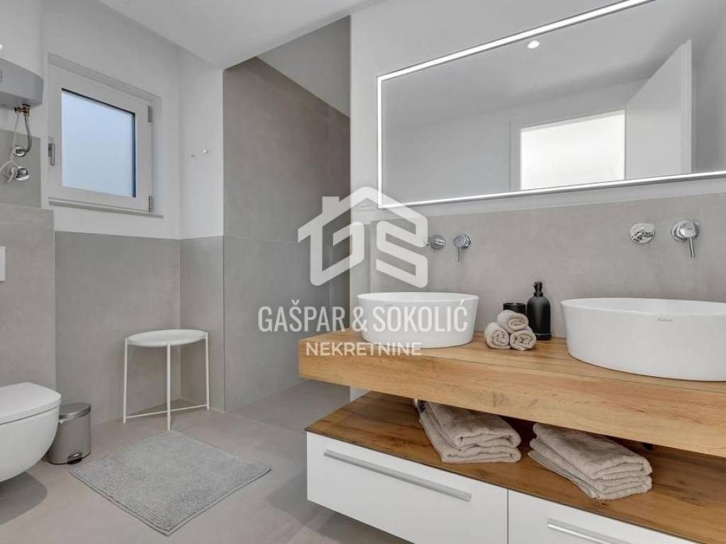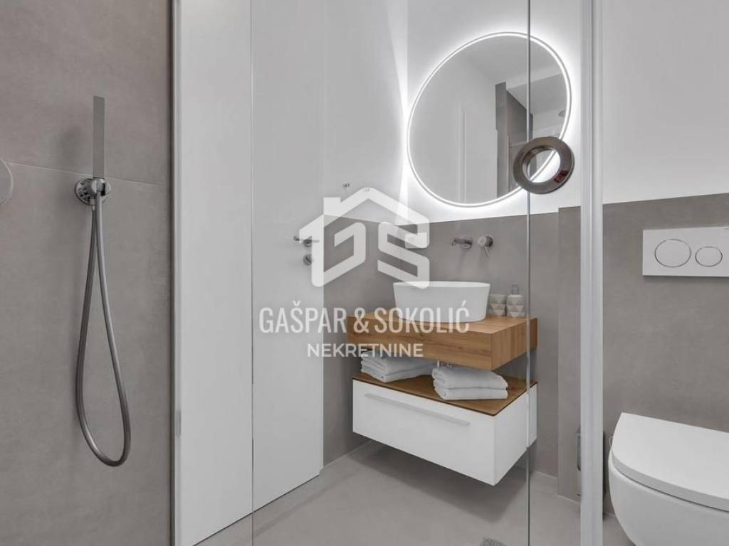 Unutrašnjost stana je moderno uređena i namještena s najvišom pažnjom na detalje, stvarajući elegantan i udoban životni prostor. Stan se nalazi na prestižnoj lokaciji Makarske rivijere, poznatoj po svojim prekrasnim plažama, što ovu nekretninu čini savršenom za život ili odmor.