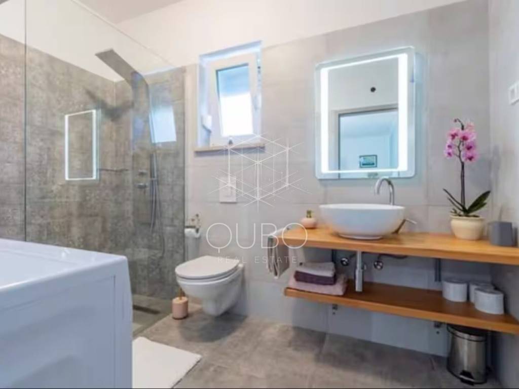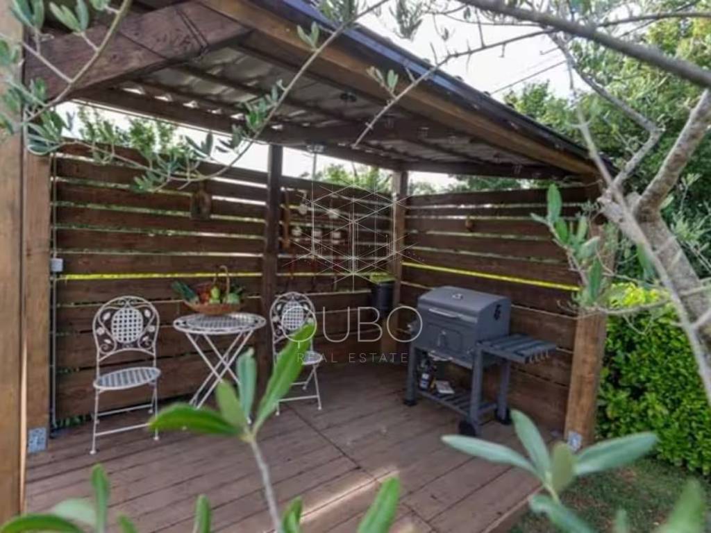 Grijanje je riješeno klima uređajima, a za dodatnu atmosferu i toplinu tijekom zimskih mjeseci na raspolaganju je i peć na drva u dnevnom boravku. • Površina kuće: 88 m² • Površina vrta: 550 m² • 2 spavaće sobe + dnevni boravak • 2 kupaonice • Ograđeni vrt • Grijanje: klima uređaji + peć na drva