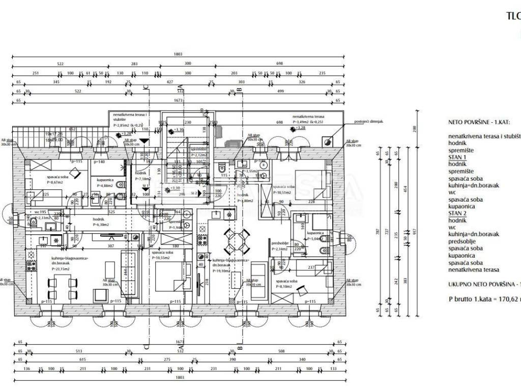 Ugrađena su protuprovalna i protupožarna vrata, stolarija je vrhunske kvalitete - PVC sa aluminijskim griljama.