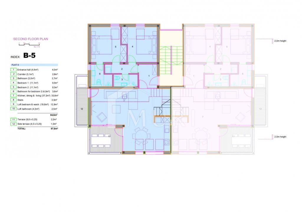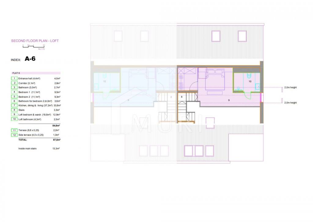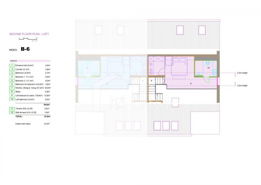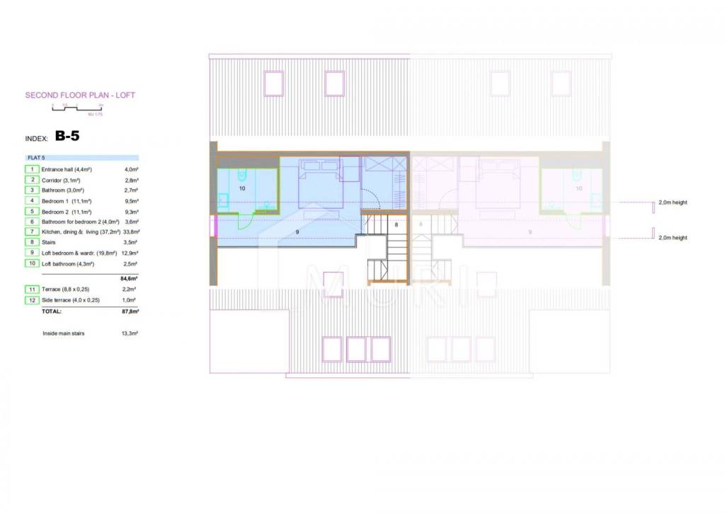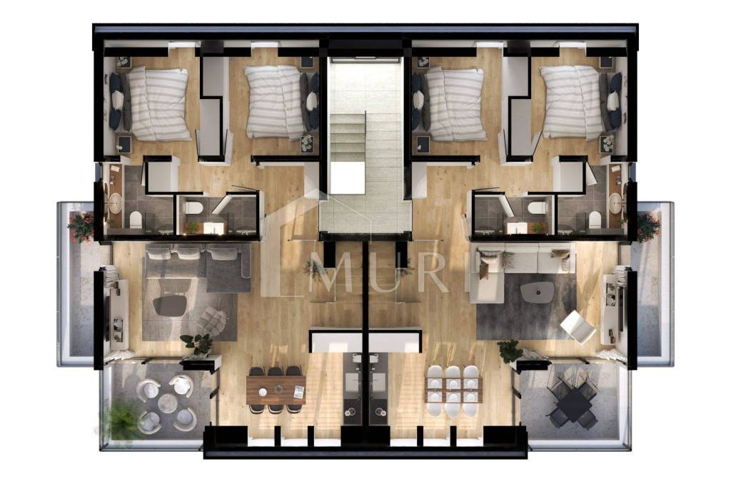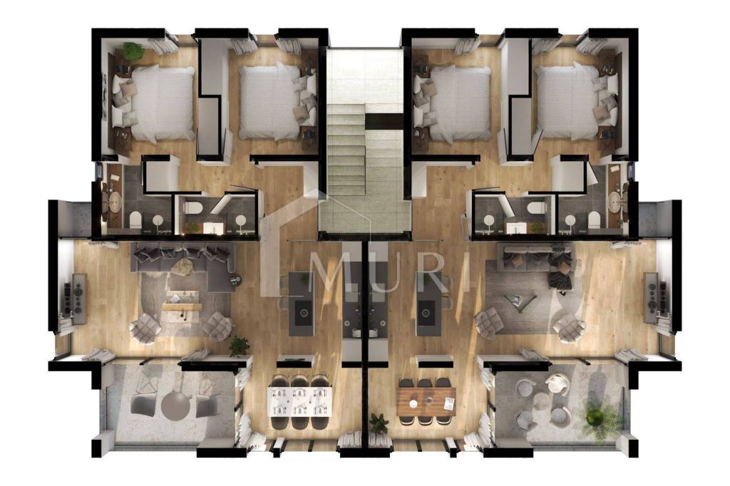 Planirani završetak: 3. mjesec 2026. Ukupna neto površina: 113 m² 2.kat 3 spavaće sobe | 3 kupaonice | 2 lođe | Otvoreni dnevni prostor