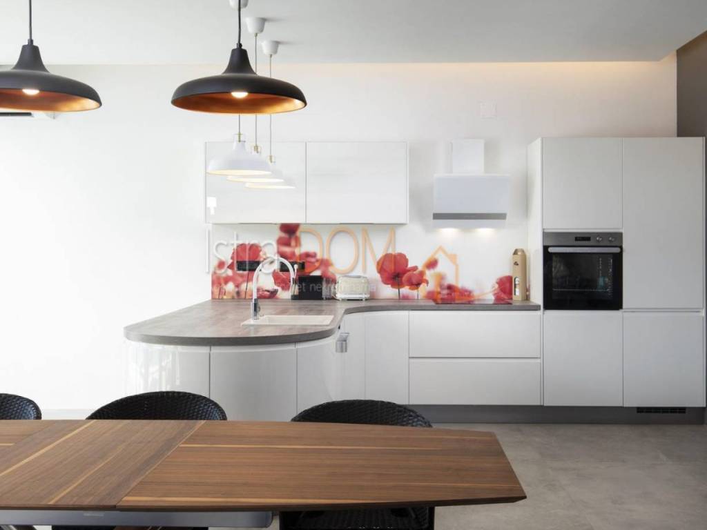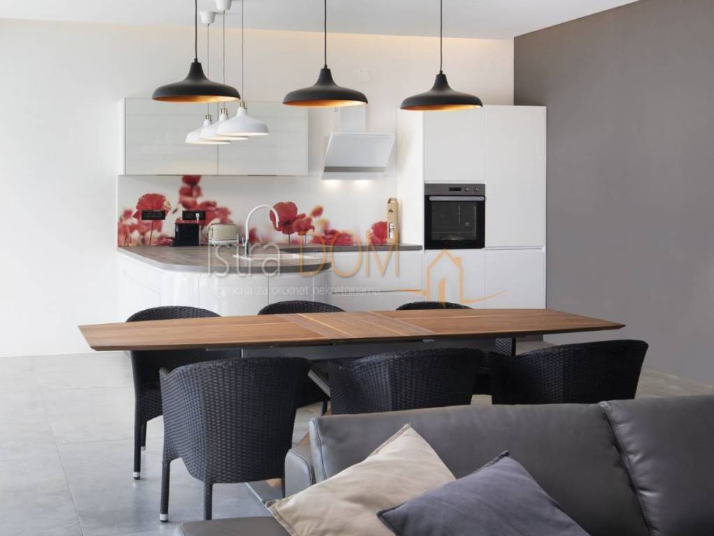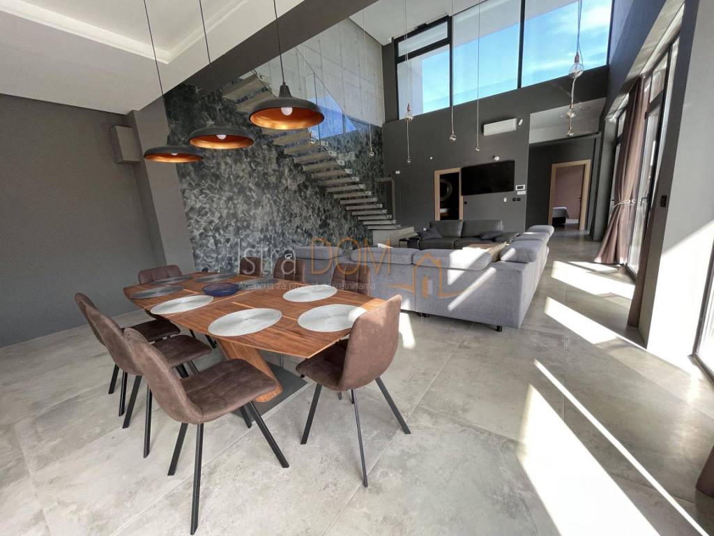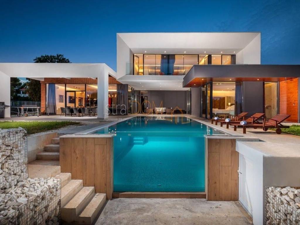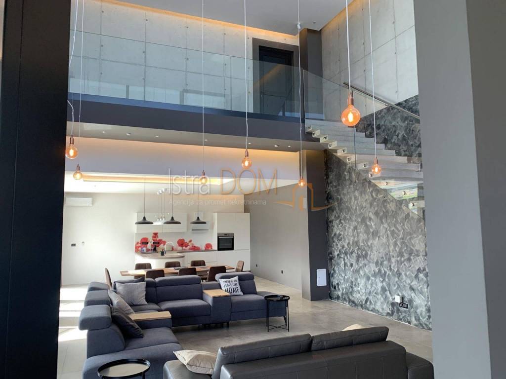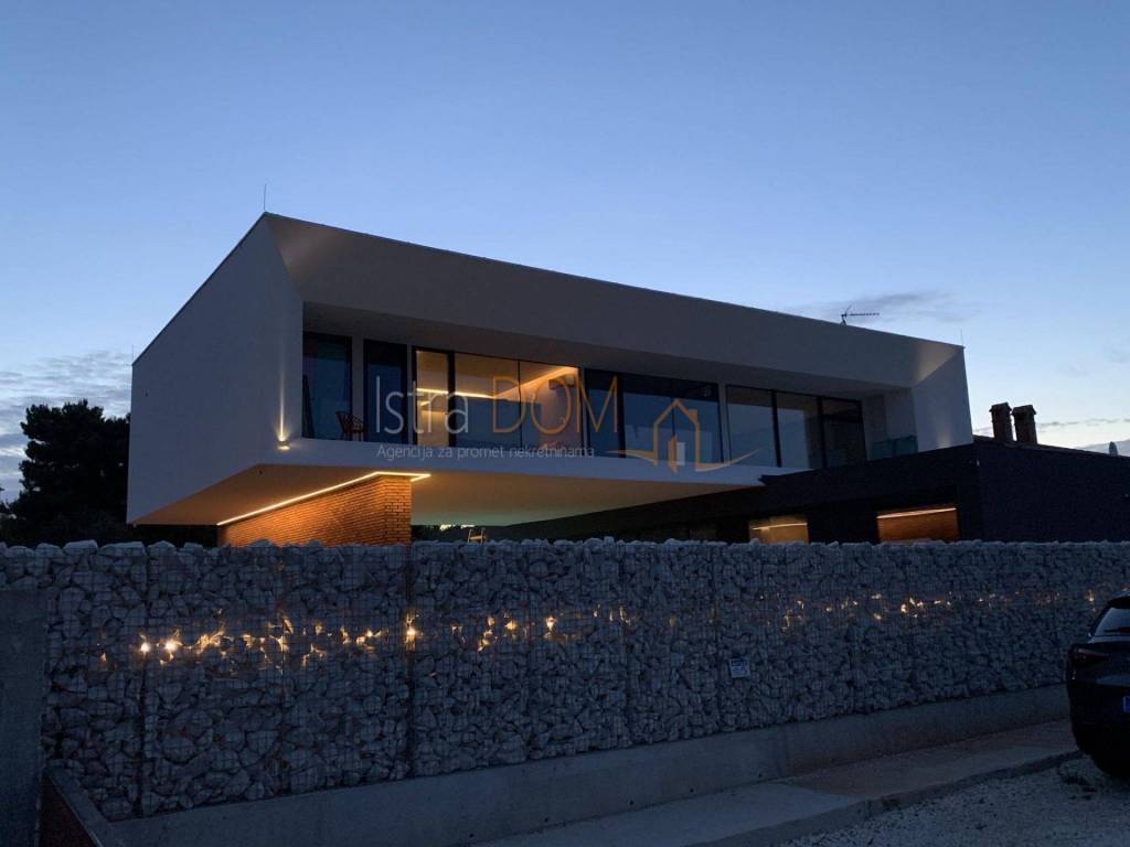 Moderna arhitektonska villa smjestila se na jugu Istre, u Ližnjanu, svega cca 500 metara od mora i plaža. Interesantne arhitekture i interijera u kojem u open space dnevnom boravku svakako dominitra visoki 7,5 metarski strop i stepenište koje kao da lebdi u zraku.