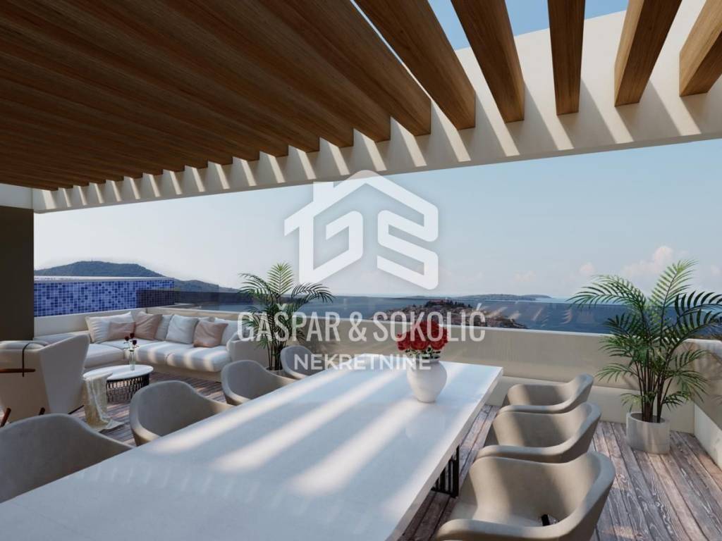 Na prodaju je luksuzni stan smješten u Primoštenu, na trećem katu zgrade, s ukupnom površinom od 263,27 m². Ova vrhunska nekretnina nudi jedinstvenu priliku za luksuzno življenje u jednom od najljepših jadranskih mjesta, pružajući savršen spoj udobnosti, stila i privatnosti.