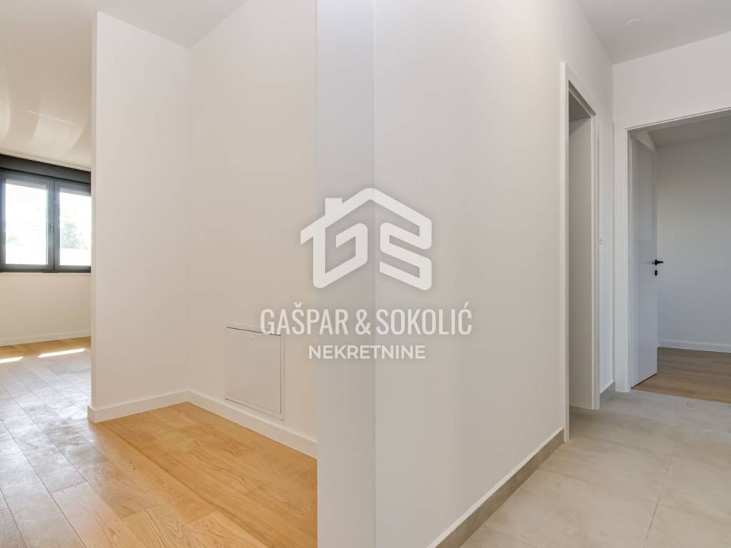 Stan je dio novogradnje izgrađene prema suvremenim standardima kvalitete i energetske učinkovitosti, s naglaskom na dugotrajnost materijala, funkcionalnost i estetiku prostora. Smješten je u mirnoj ulici, u blizini svih ključnih sadržaja – trgovina, škola, vrtića, javnog prijevoza i glavnih prometnica, što ovu lokaciju čini idealnom za obiteljski život, ali i kao izvrsnu investiciju.