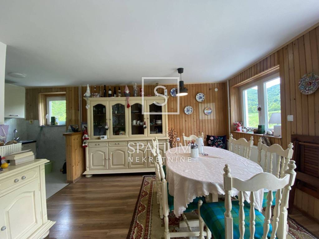TUK MRKOPALJSKI, u ponudi imamo obiteljsku kuću koja se nalazi na samo 2 km od skijališta Čelimbaša kao i samog mjesta Mrkoplja, a u blizini su Bijele i Samarske stijene te ostale znamenitosti koje pruža Gorski kotar. Kuća je u potpunosti preuređena 2022. godine, nova fasada, stolarija, centralno grijanje na pelete, prodaje se potpuno namještenea. Prizemlje kuće sastoji se od dvije prostorije, jedna od tih prostorija pruža mogućnost spavanja i ima vlastitu kupaonicu. Ovo je idealno za goste ili članove obitelji koji žele privatnost i udobnost. Na katu se nalazi hodnik, kuhinja s rustikalnom blagovaonicom, dnevni boravak, kupaonica i veliki balkon. Ova etaža nudi obilje prostora za druženje, kuhanje i opuštanje. Veliki balkon pruža prekrasan pogled na okolni krajolik i zelenilo. Drugi kat kuće sastoji se od dvije spavaće sobe. Master spavaća soba ima vlastiti izlaz na balkon, dok druga spavaća soba ima vlastiti WC. Ove sobe pružaju privatnost i udobnost te su idealne za odmor i opuštanje.