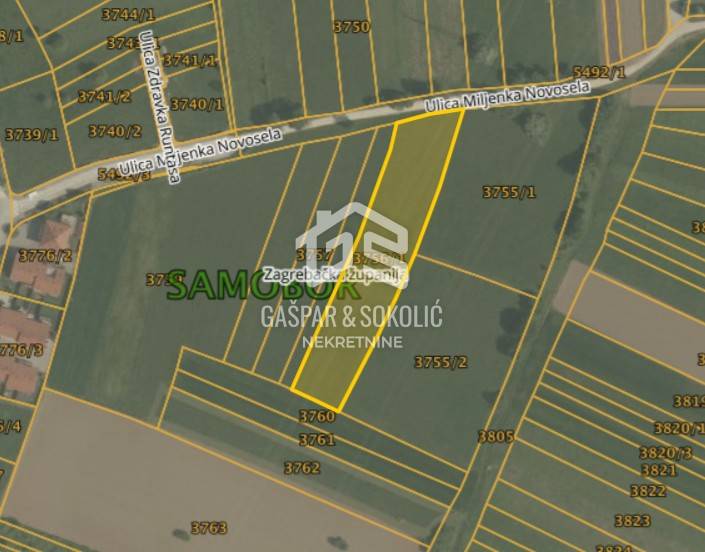 Na prodaju je prostrano poljoprivredno zemljište površine 4040 m², smješteno na izuzetno atraktivnoj lokaciji u Samoboru, neposredno uz Samoborske vrtove. Zemljište se nalazi tik uz asfaltiranu prometnicu, što omogućuje jednostavan i praktičan pristup.